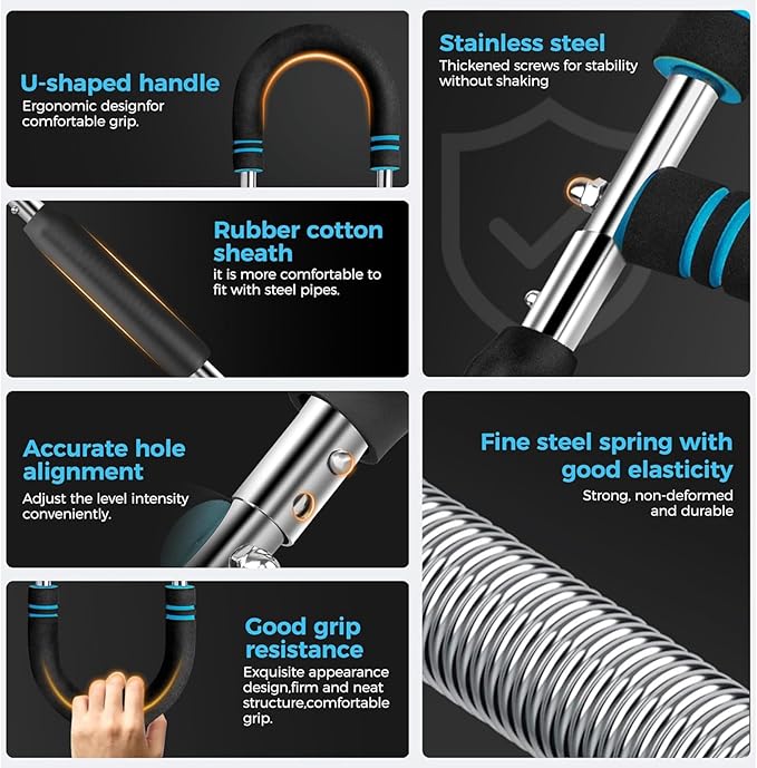 - PRO-GRADE SAFETY & DURABILITY: High-resilience metal springs wrapped in elastic leather covers prevent pinching, rust, and wear. Thickened anti-slip foam handles ensure a secure grip during intense chest press or twisting motions