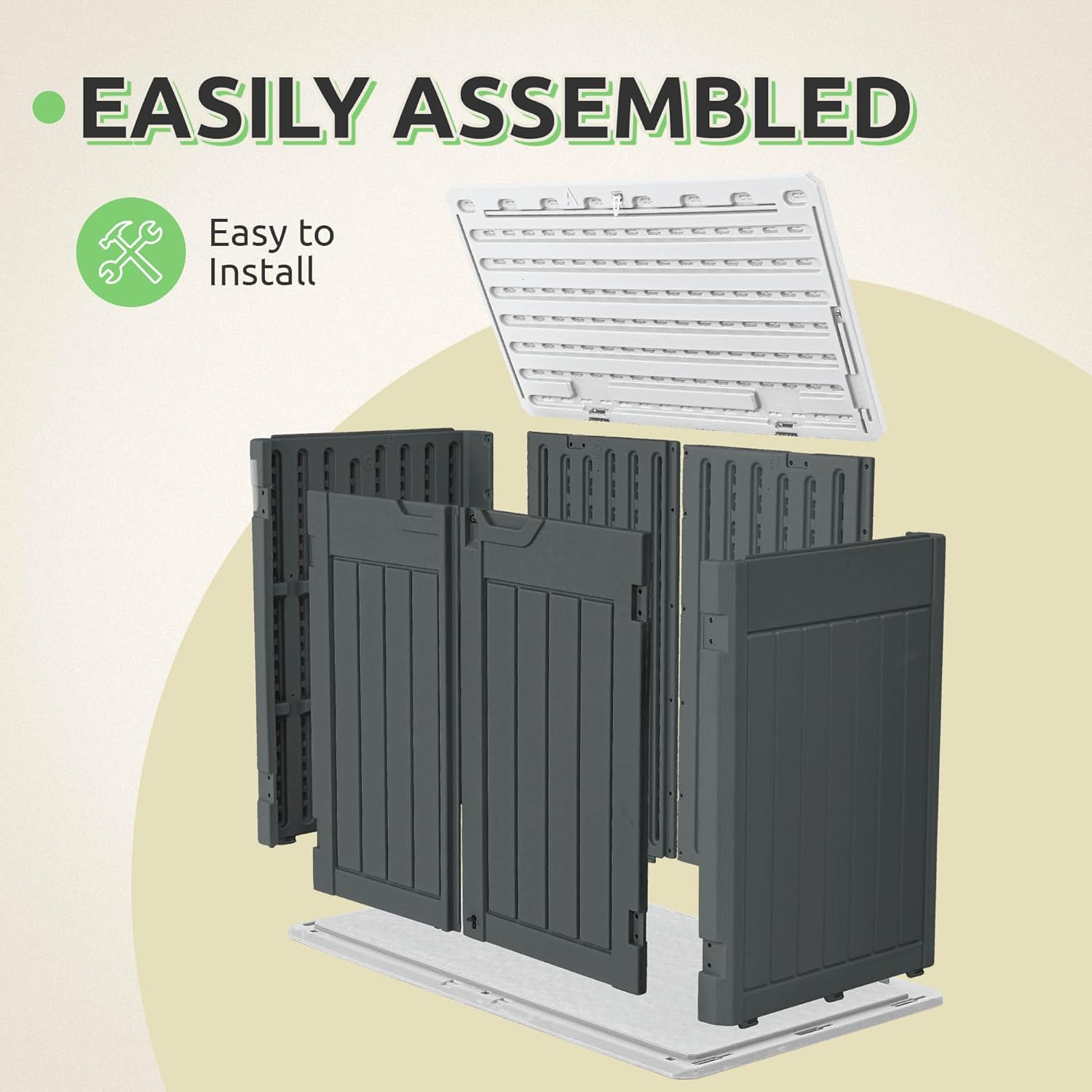 • Quick Setup and Separate Shipment: Measuring 53.2''L x 33.2''W x 46.3''H exterior, and 50.8''L x 29.9''W x 44.5''H interior, this resin plastic shed comes with clear instructions for a 20-minute easy assembly