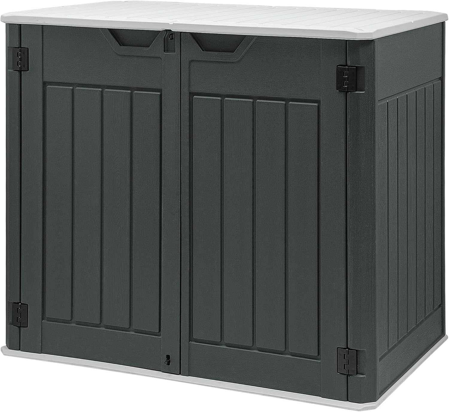 • All-Weather Resilience: Built from durable resin, this horizontal garden storage shed provides UV protection and waterproof performance, featuring a stylish wood-textured finish that resists fading and a lid designed to keep water out
