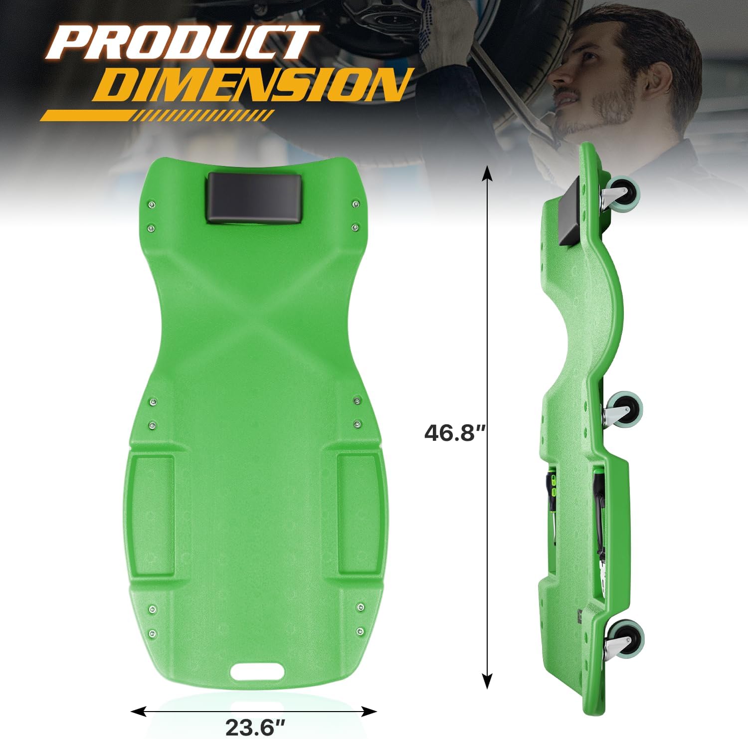 Magshion Mechanic Creeper with Padded Headrest & Tool Trays – 440 lbs Capacity, Rolling Garage Creeper with 6 Swivel Wheels, Lightweight & Portable Under Car Creeper for Auto Repair (Green)