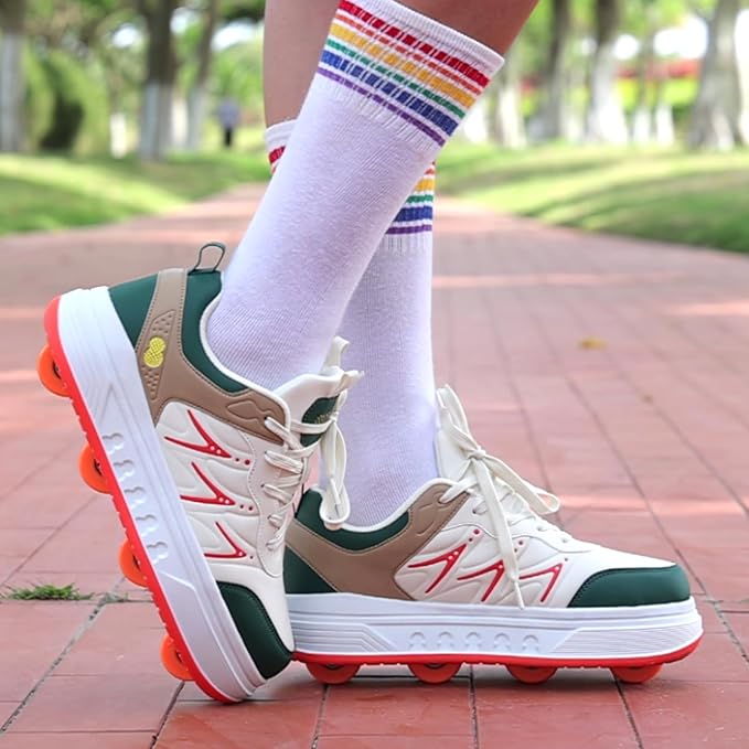 - 【Occasions & Function】Pairobin roller skates is a pair of sneaker with wheels, suitable for skate lovers of all levels. With wheels installed, they can be used as skate shoes for exciting and fun skating. Beginners can start by removing the two front wheels for easier learning, and install all wheels once they get proficient. When all wheels are removed, wheel shoes work as stylish casual sneakers. Ideal for outdoor activities, entertainment, and even daily commuting in a fun way