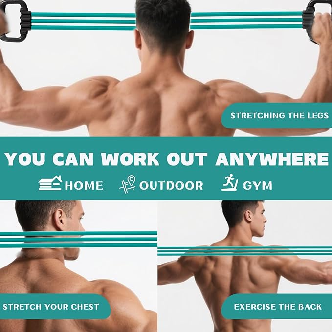 6-Pipe Chest Expander & Shoulder Stretcher - Adjustable Detachable Resistance Tubes for Home Gym, Rehab, Strength Training + Easy Workout Guide (Men/Women)