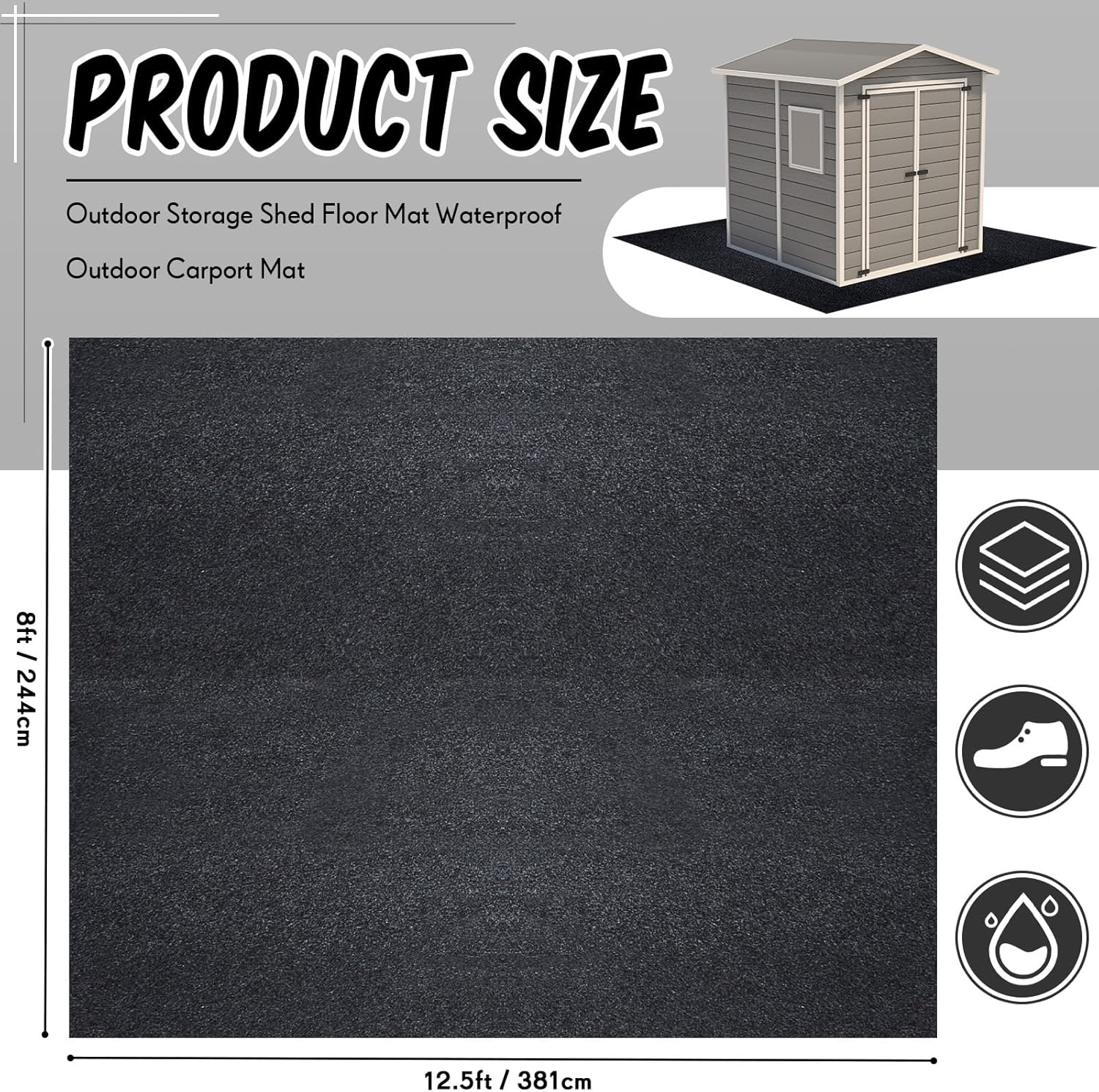 Haull Outdoor Storage Shed Floor Moat Waterproof Outdoor Carport Mat Thickened Soft Patio Furniture Pad Washable with Non Slip Backing, Storage Shed Not Included(8 x 12.5 ft)