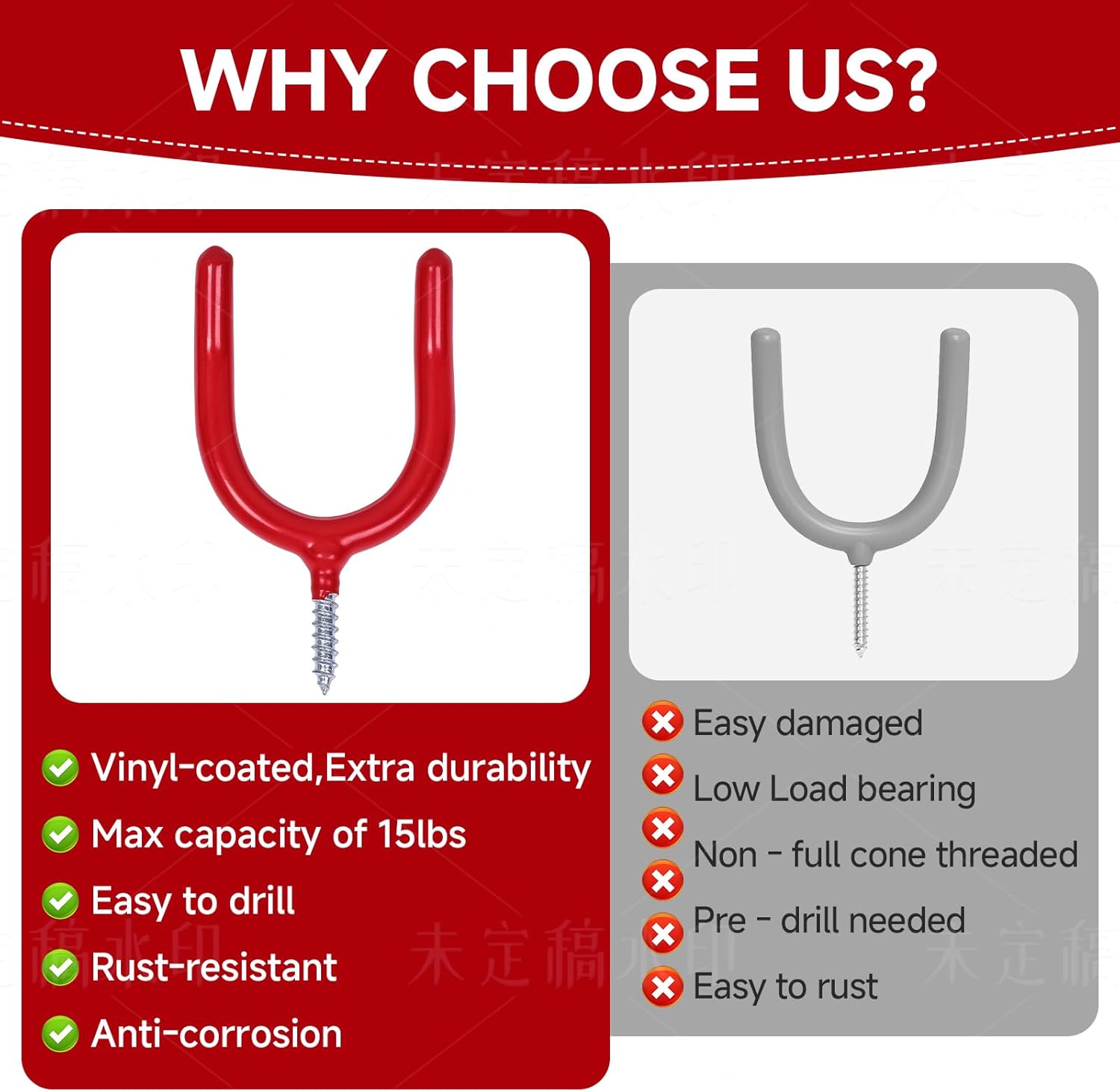 6 Pack Garage Storage System Steel U Hooks with Anti-Slip Coating Home Improvement and Organization Screw in Hooks Easy Wall Mounting Heavy Duty Bike and Ladder (Red, 6 Pack)
