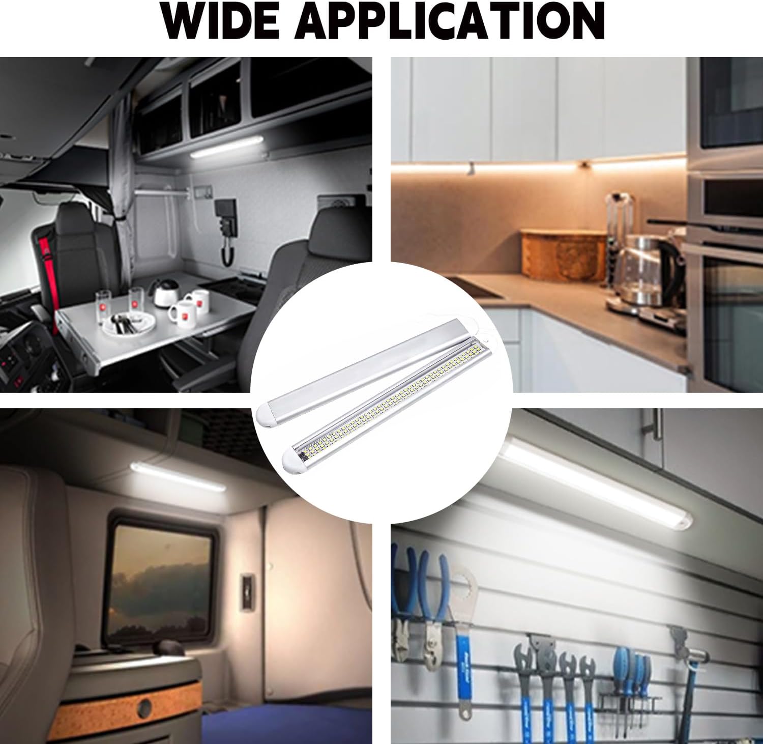 - The flexible design ensures this 12v led lights installed tidily and suitable for various vehicles like cars, pickup trucks, SUVs, RV and etc. It can also be widely applied as light source for emergency, camping, car maintenance, working, etc. 12V voltage enables this light bar to easily fit in any vehicle, automobile, home, office, cabinet, and commercial spaces and its wide lighting range provides abundant lighting for reading, working and video conference