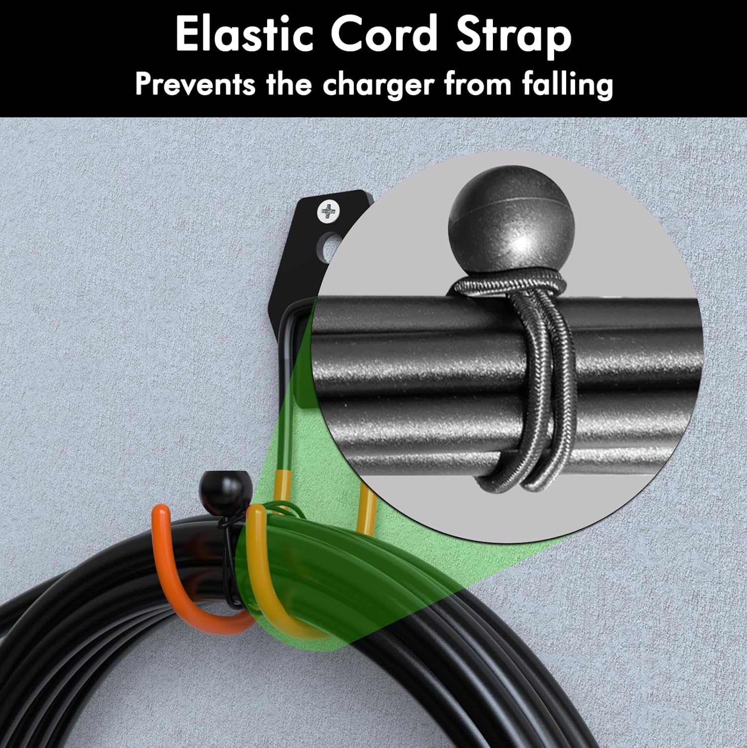 - Extra-Wide J-Hook Design: The wide J-shaped hook allows for more loops of cable to be stored neatly and conveniently, helping keep your garage or charging area organized and clutter-free