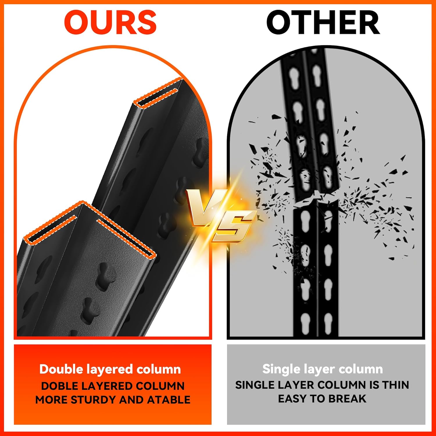 - ăDouble-Layer Post Design â Protect Your HandsăSay goodbye to flimsy single-layer post shelves that scratch easily. Our double-layer post design ensures thicker, higher-quality columns while safeguarding your hands from cuts and scrapes