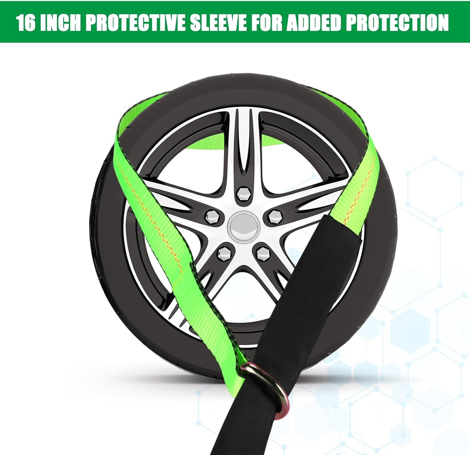 - Easy to Use: our truck straps are designed for easy usage; You can attach them quickly and securely without requiring additional tools, just lasso the strap around your tire and back through the D ring and then secure the strap with a ratchet or a winch; Additionally, once they are on, they are not easy to come off, bringing a safe and secure tow