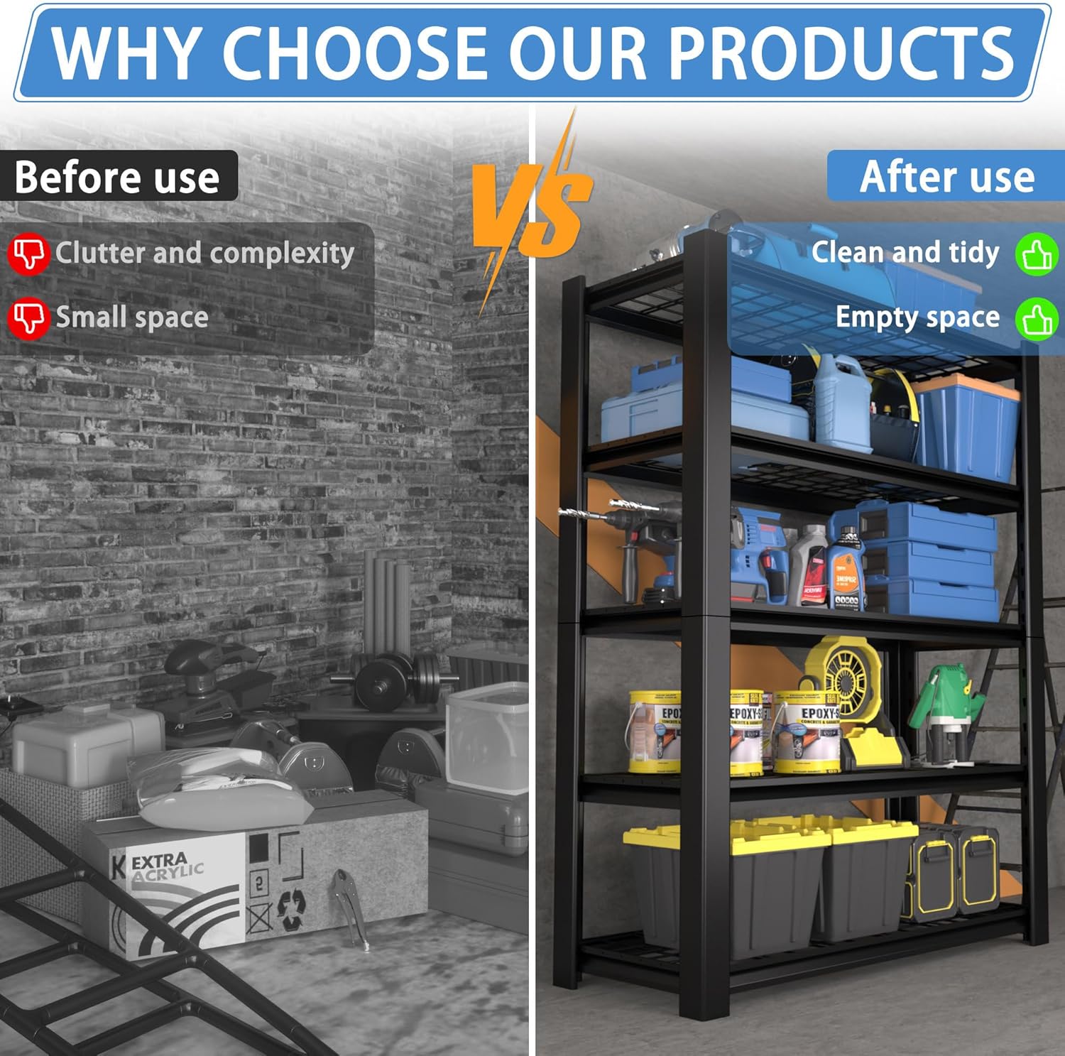 - All-Purpose Ventilated Storage Solution: From car parts in the garage to cleaning supplies in the basement, this metal wire shelving unit suits any setting. Ideal for homeowners, renters, handymen, and mechanics seeking heavy
