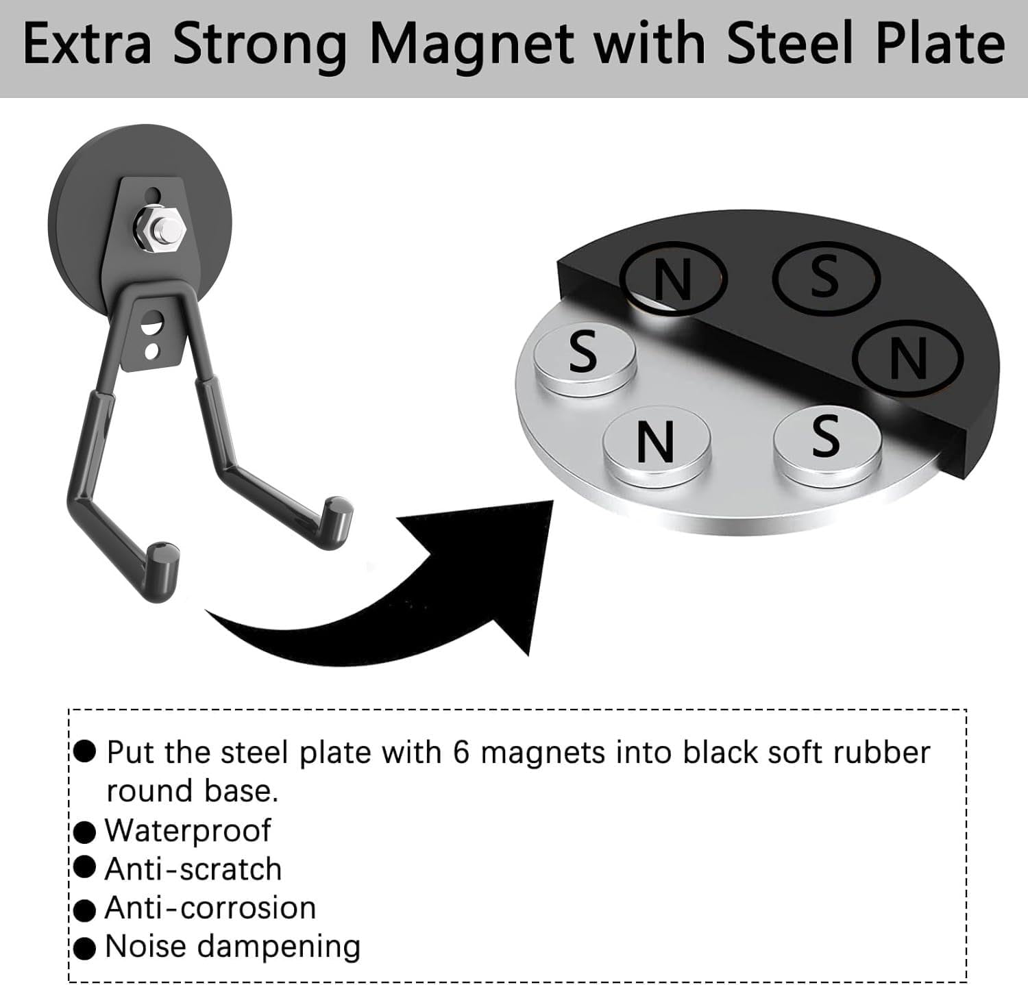 - π§²[Super Convenient Magnetic Hook]: This hook has been upgraded on the traditional hook, adding magnets, easy to use, no installation will not damage the wall, you can move it anywhere.This heavy duty large garage magnetic hooks are made of a 2.6inch magnet base magnet with 6 super strong magnets inside., strong load-bearing and providing a sturdy storage solution. It is a good choice for storing heavy objects.