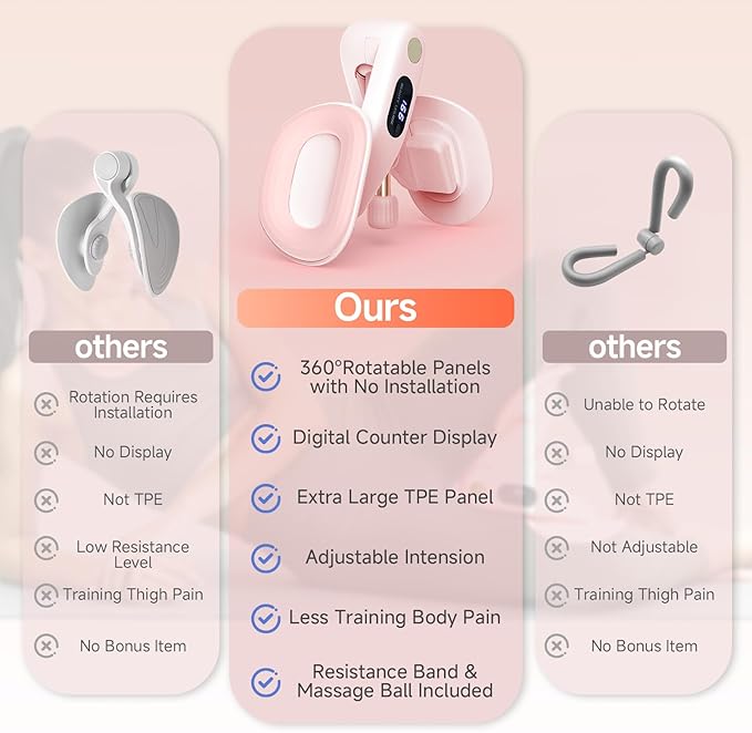 - Clearly Visible Counting Screen: The built-in digital screen of the inner thighs exercise equipment hip trainer kegel exerciser displays the number of exercises in real-time, giving you a clear view of your workout progress. This helps you plan your fitness goals scientifically and improve workout efficiency.