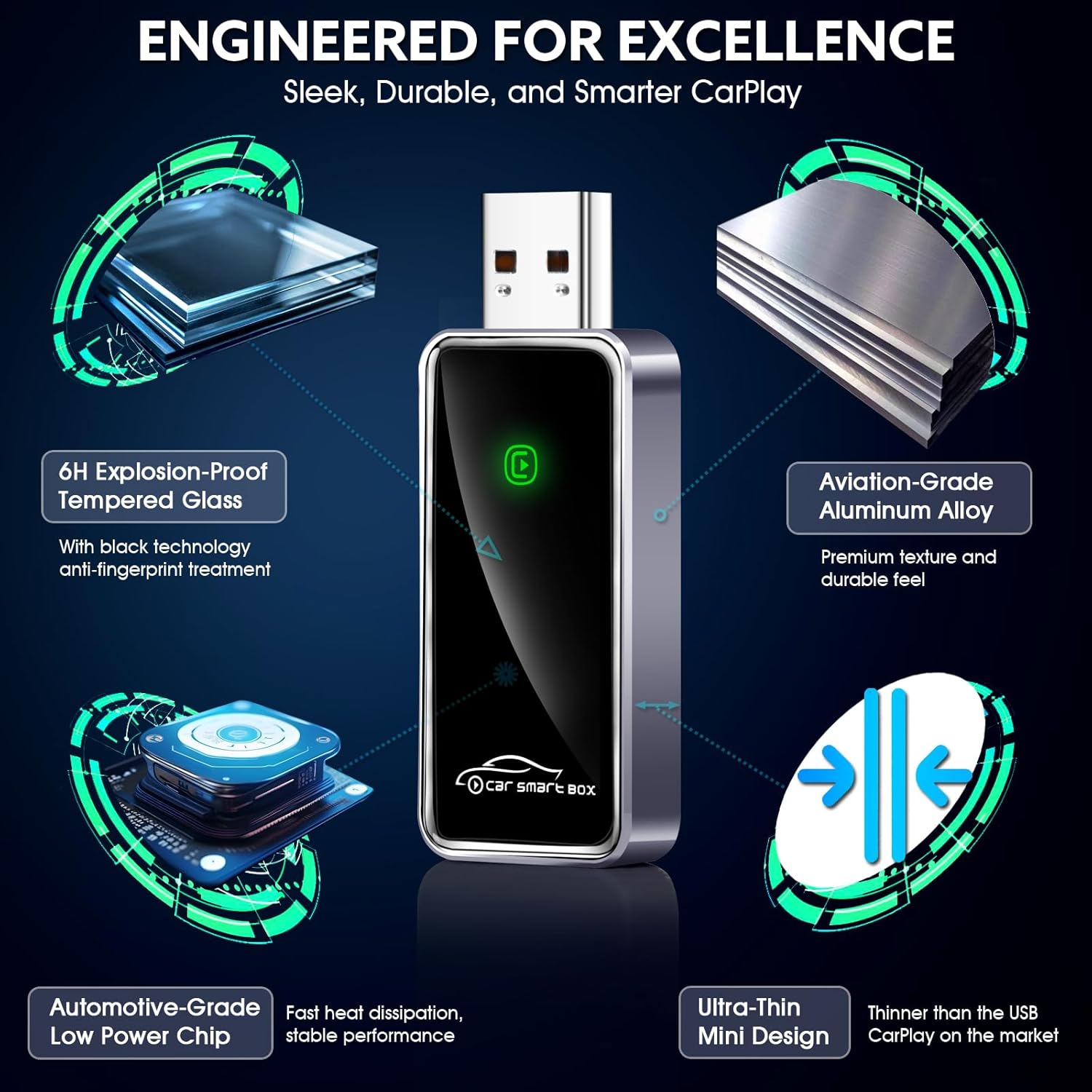 - 🧩【Compact, Durable & Dual-Port Compatible Design】 With a sleek mini body and premium metal frame for enhanced heat dissipation, this CarPlay dongle fits neatly into your dashboard area without clutter. Includes both USB-A and USB-C connectors to match a wide range of vehicles. Rigorously tested for durability and port compatibility, it supports over 800 car models with built-in wired Apple CarPlay and works with iPhones running iOS 10 and above.