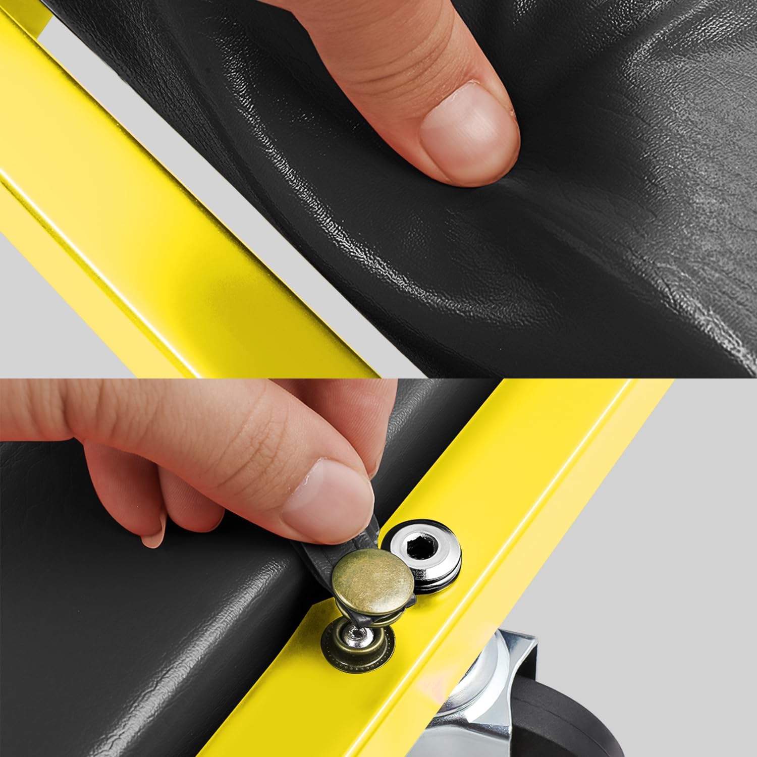 DNA MOTORING 48" 2 IN 1 Folding Rolling Garage Shop Creeper Roller Seat, 7 Pcs 2" Casters, 350 Lbs Weight Capacity, Yellow, TOOLS-00193-YL