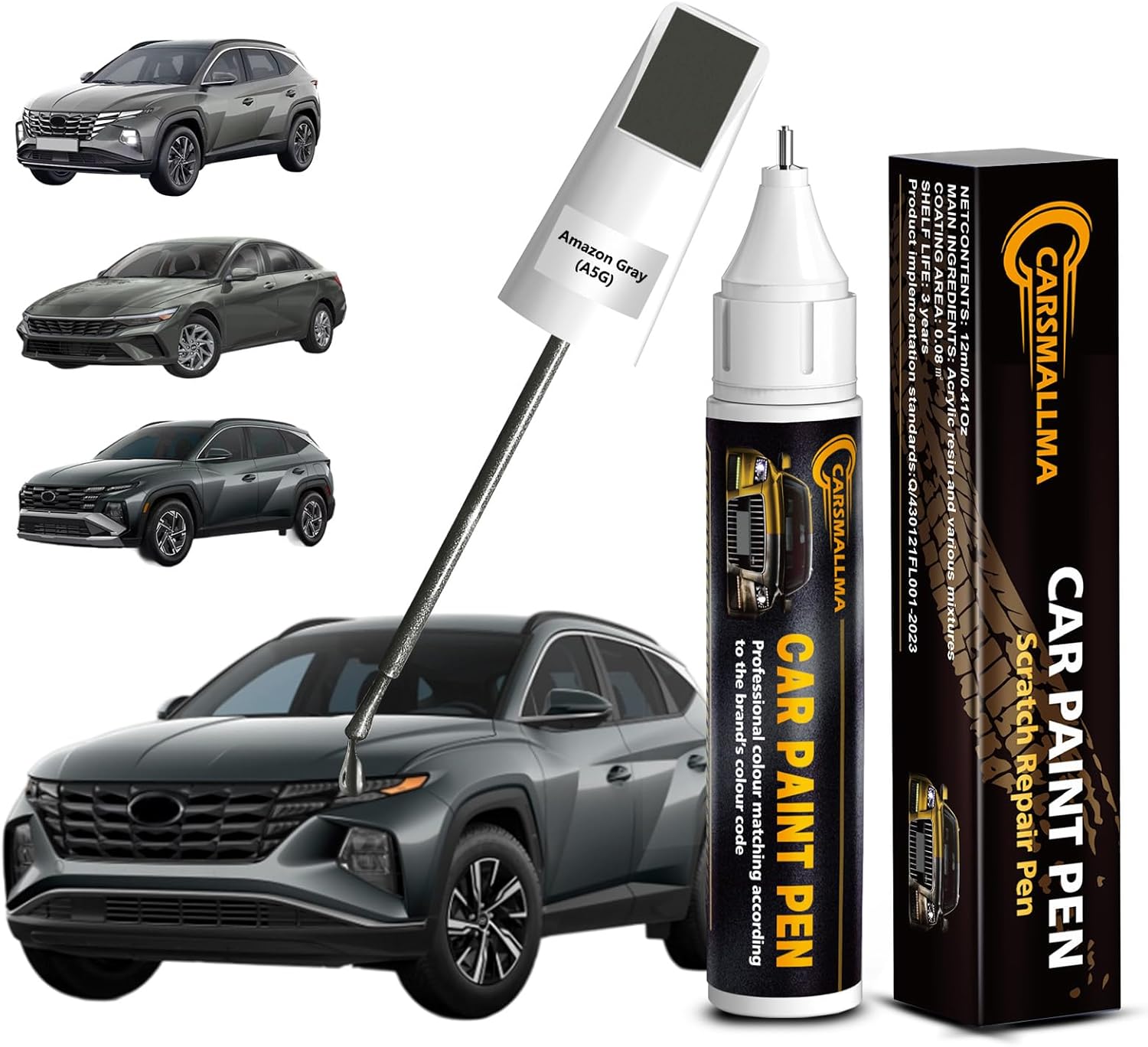 - Exact Color Match: Carsmallma car touch up paint(A5G Amazon Gray) is expertly formulated for Hyundai vehicles, including I30/Fastback/Nexo/Tucson/Nx4/Tuscon/Hybrid/I20/I30/Tucson/Ioniq/I30/Kombi/Ioniq/I and more. The automotive paint is meticulously crafted and rigorous testing to match the original factory finish, making scratches, chips and peeling paint hardly noticeable. Whether on bumpers or body surface, it delivers a perfect finish