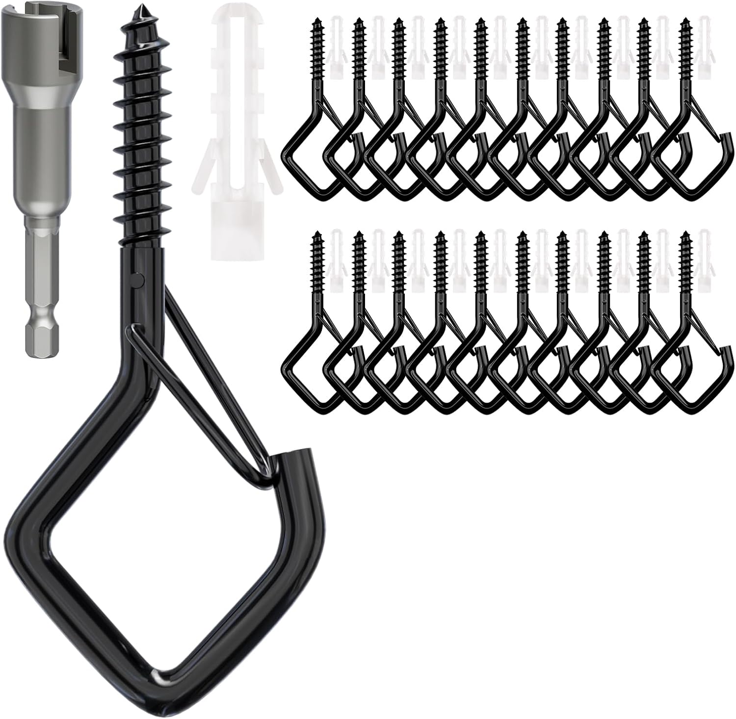 20 PCS Screw Hooks with Safety Buckle, Heavy Duty Ceiling Hooks for Hanging Outdoor String Lights, Plants, Wind Chimes, 2.36 inches, Black