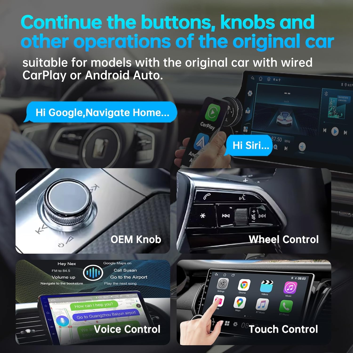 - 【Plug and play】 non-inductive connection, say goodbye to wired constraints.Instantly upgrade your factory-wired CarPlay to wireless while preserving your car’s original touchscreen and knob controls. Enjoy hands-free access to Siri, calls, Maps, Spotify, Messages, and more - all without the clutter. Cut the cords and drive smarter!