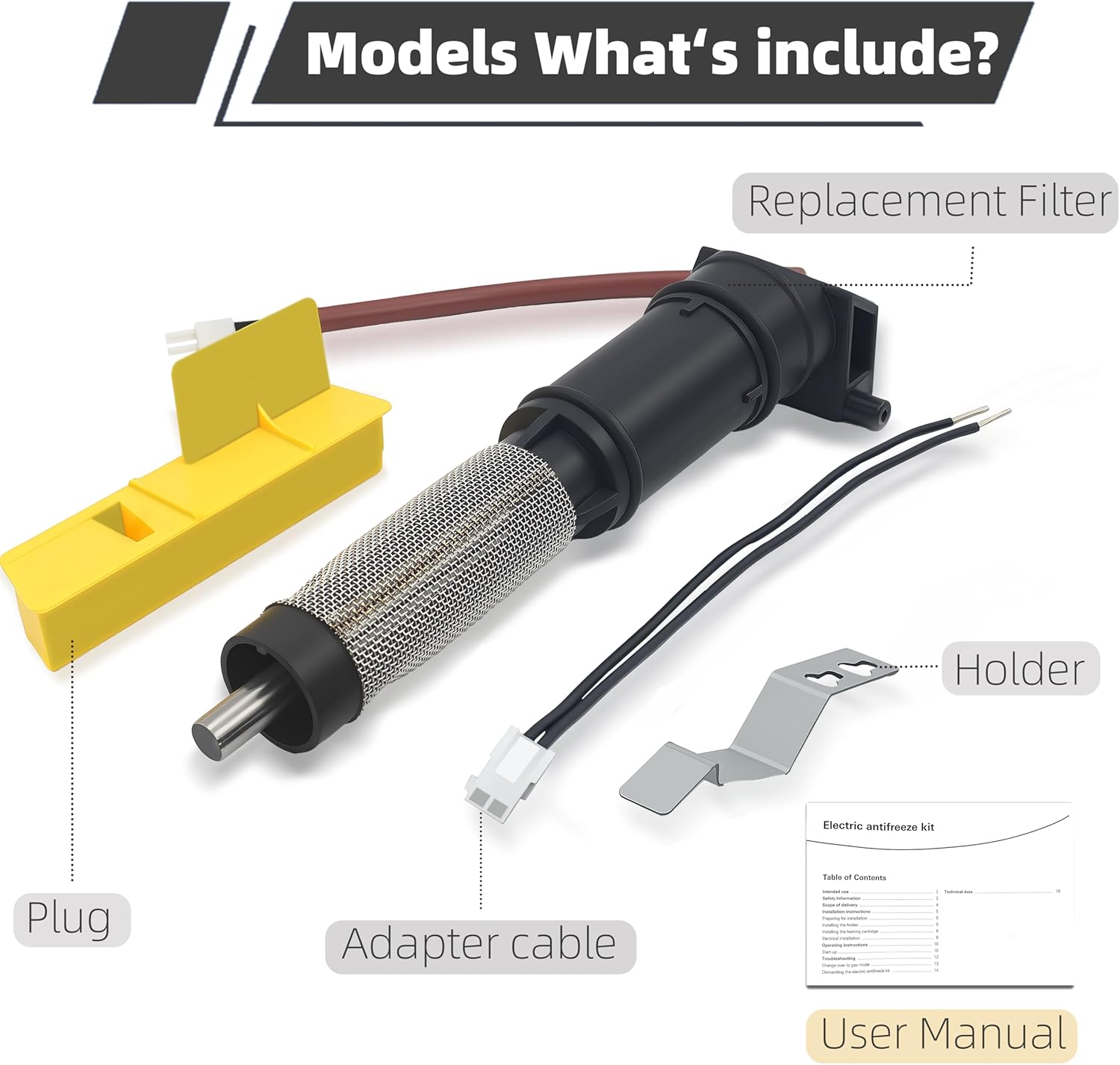 - 【Simple Installation】Upgrading your water heater system with the electric antifreeze kit is effortless. The user-friendly design ensures a hassle-free setup, allowing you to install it in just a few minutes. Just connect the antifreeze kit to the "Easy Drain Lever" and plug it into the cable harness—no complicated instructions or tools needed. Enjoy a smooth and efficient installation process with ease