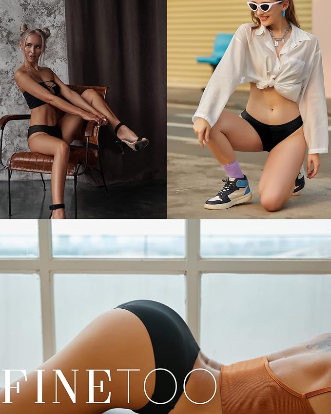 FINETOO 6 Pack Women’s Seamless Hipster Underwear No Show Panties Invisibles Briefs Soft Stretch Bikini Underwears XS-XL