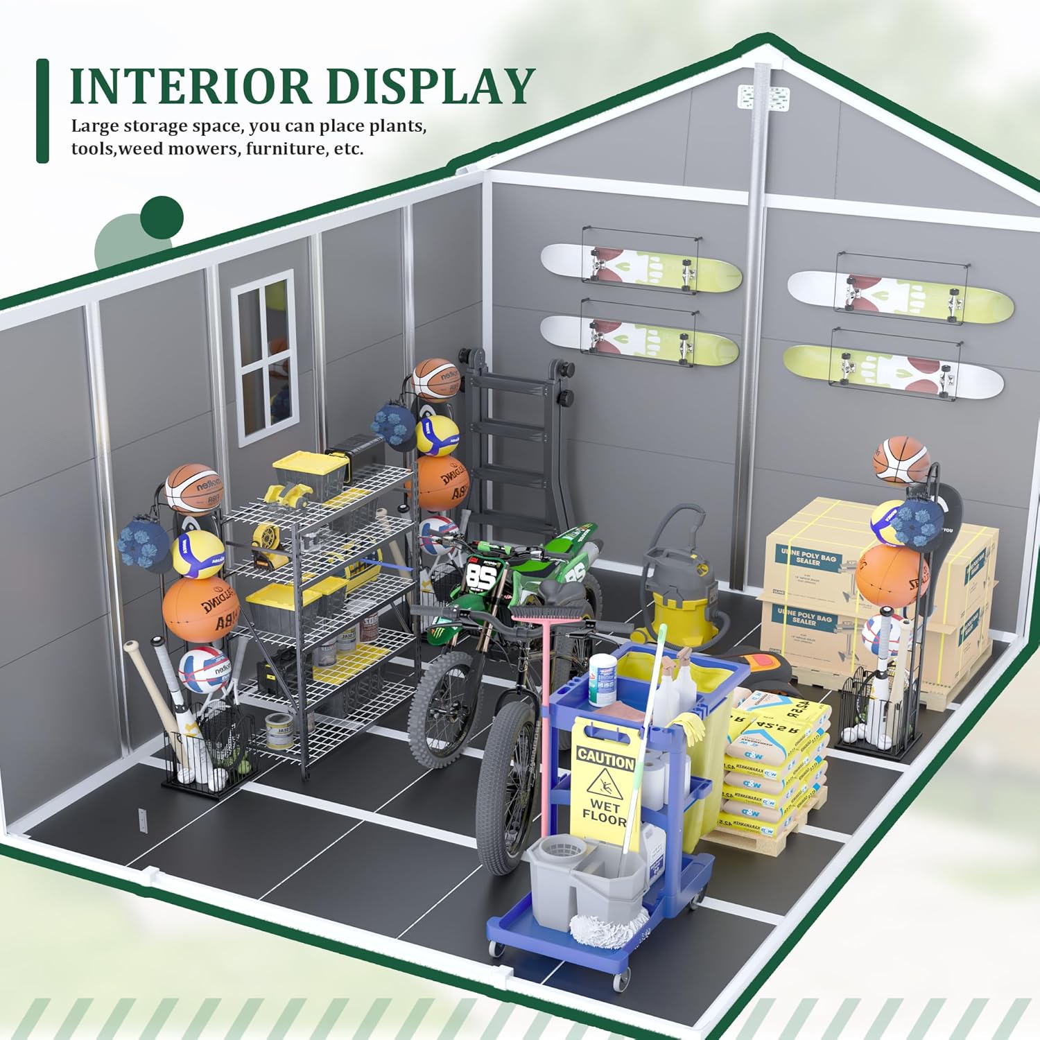 - 【12mm Thickened Premium PP Panels – Built to Last】 Crafted from high-quality polypropylene, this outdoor shed features ultra-durable 12mm thick panels—significantly stronger than typical plastic sheds. With superior pressure resistance and impact protection, it stands firm against wind, rain, and accidental collisions for long-term outdoor use.
