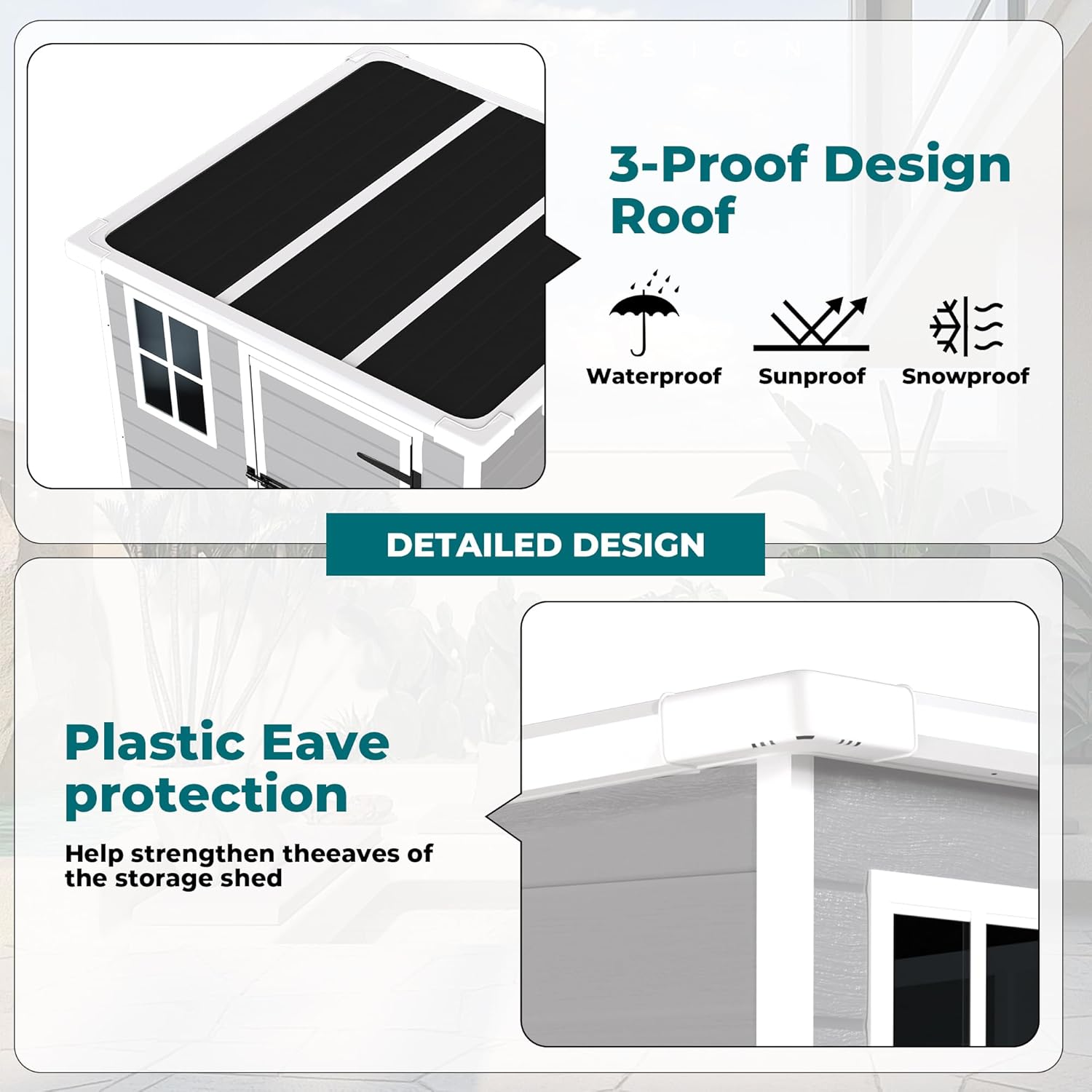 - 【12mm Thickened Premium PP Panels – Built to Last】 Crafted from high-quality polypropylene, this outdoor shed features ultra-durable 12mm thick panels—significantly stronger than typical plastic sheds. With superior pressure resistance and impact protection, it stands firm against wind, rain, and accidental collisions for long-term outdoor use.