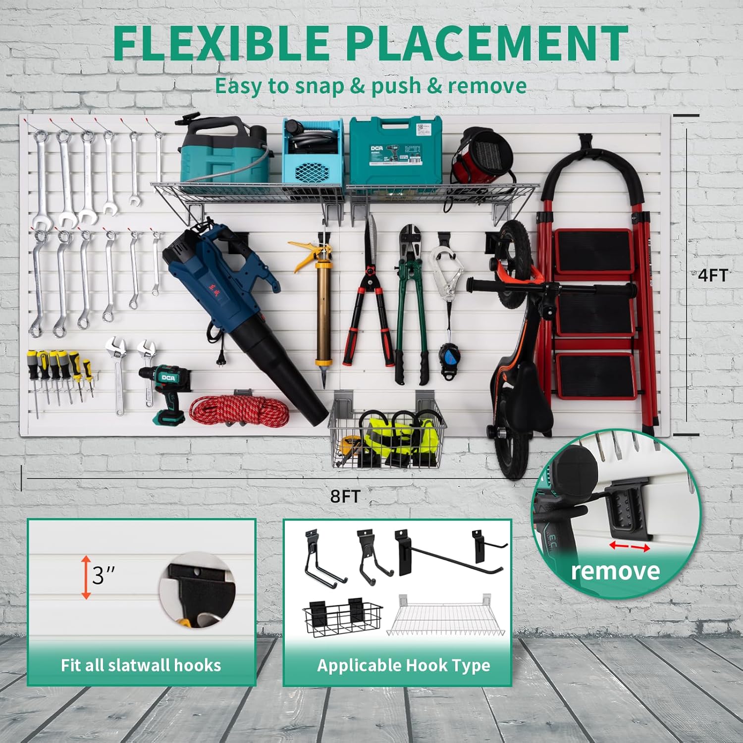 - MAKE FULL USE OF YOUR SPACE: Unleash the true potential of your garage wall organizer for tools with the garage slat wall panel. By making smart use of vertical wall space, you can revolutionize your garage into a seamlessly organized and efficient area. Bid farewell to a messy garage and welcome a meticulously optimized space that maximizes every inch available. Enjoy effortless access to your tools, equipment, and accessories, all while crafting a visually captivating environment.