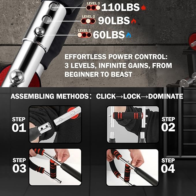 - 【60/90/110LB Scientific Progression, Precisely Matches All Stage Goals】: This forearm strengthener and chest workout equipment offers three resistance levels for free adjustment, precisely matching users of all stages – men/women, beginners/pros. Progress from recovery warm-up to fat-loss shaping to intense muscle gain, using this forearm trainer and witnessing growth step by step.