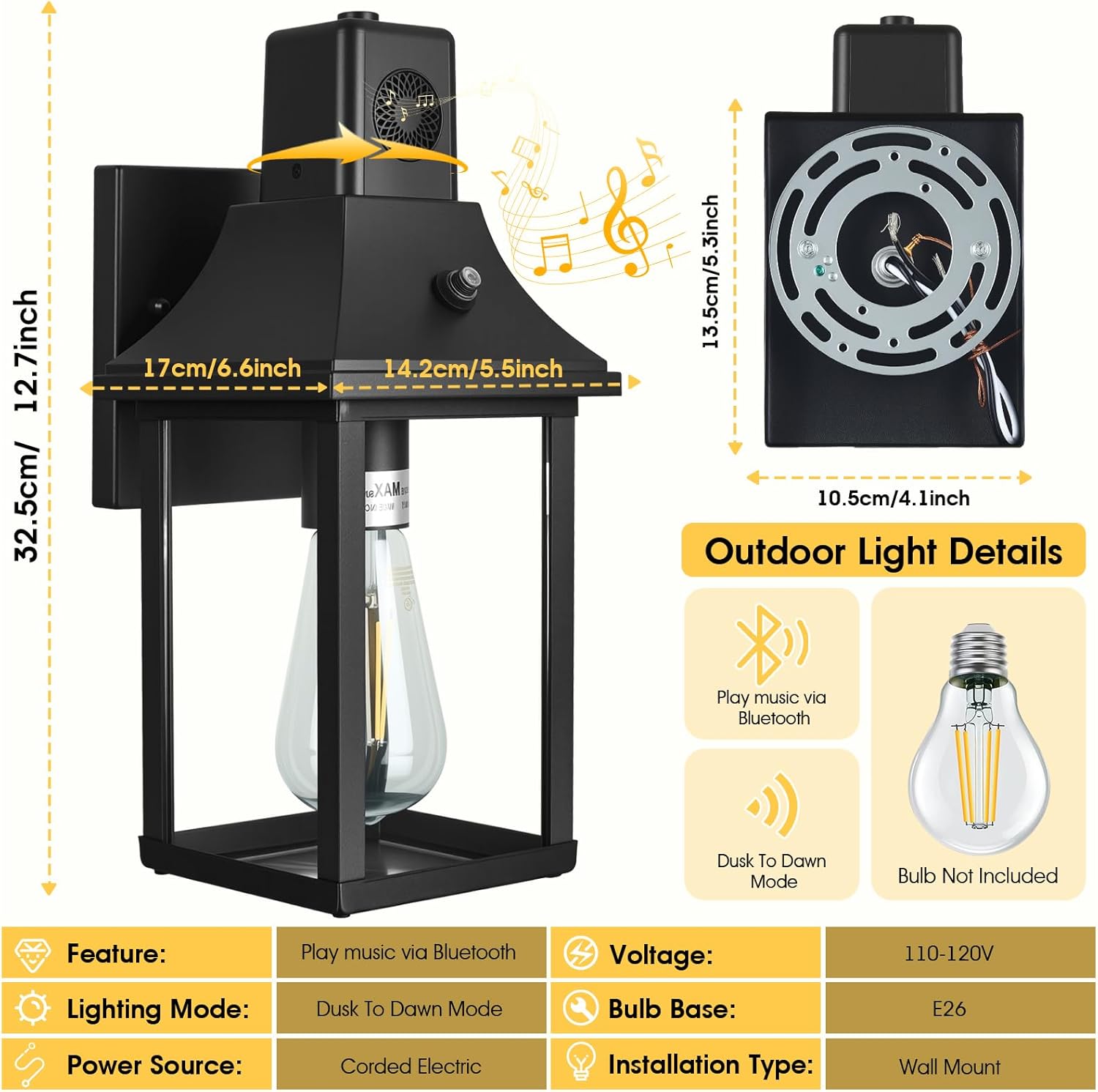 - 【Versatile Outdoor Use: Patio, Garage, Front Door & More】 Elevate ambiance with porch lights outdoor; secure perimeters via outdoor garage lighting fixtures; enhance entries with front porch light fixtures; illuminate pathways as outdoor sconces wall lighting; complement architecture with coach lights outdoor – all combining illumination and premium audio