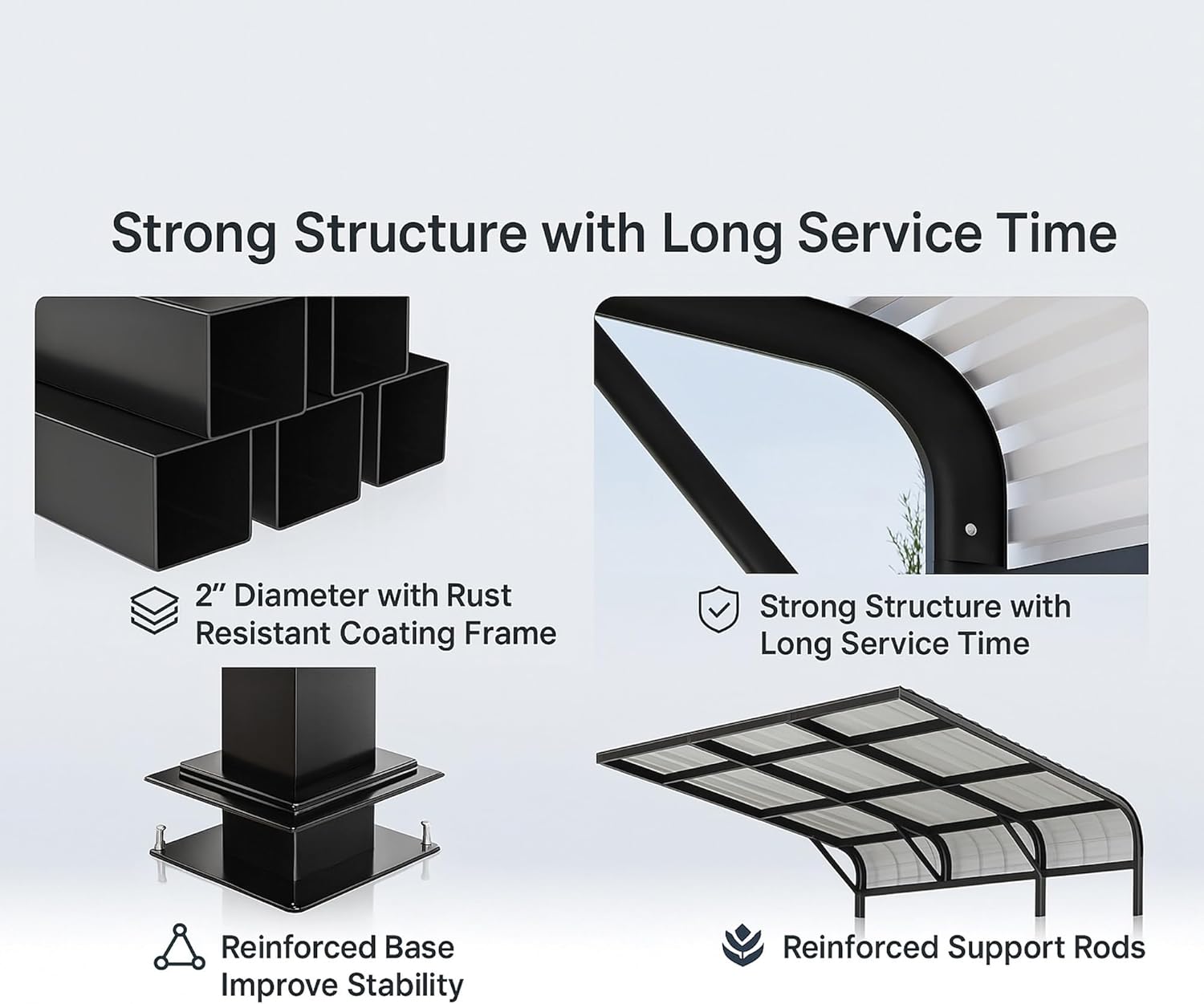 - 【All-Steel Construction | Built to Last】 Engineered with high-strength square steel tubing and steel roof, all treated with triple-layer protective coating for superior weather resistance—no more flimsy tarp shelters.