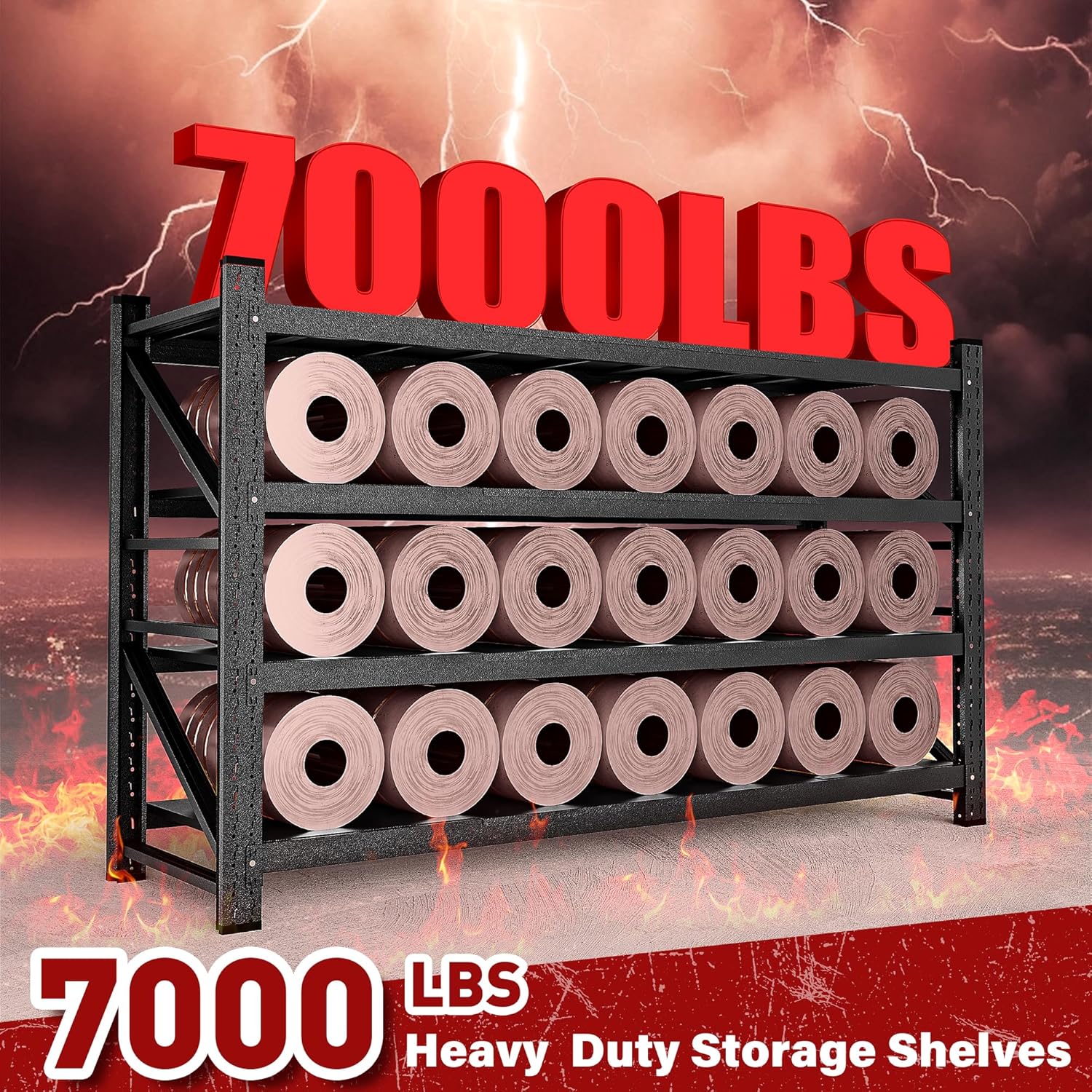 7000LBS Heavy Duty Garage Shelving Units,79" Wide & Deep Storage Shelves,Black Metal Garage Shelves,Large Storage Rack,Steel Shelf,Industrial Shelving for Shop,Warehouse,Basement,79" W x 24" D x 79" H