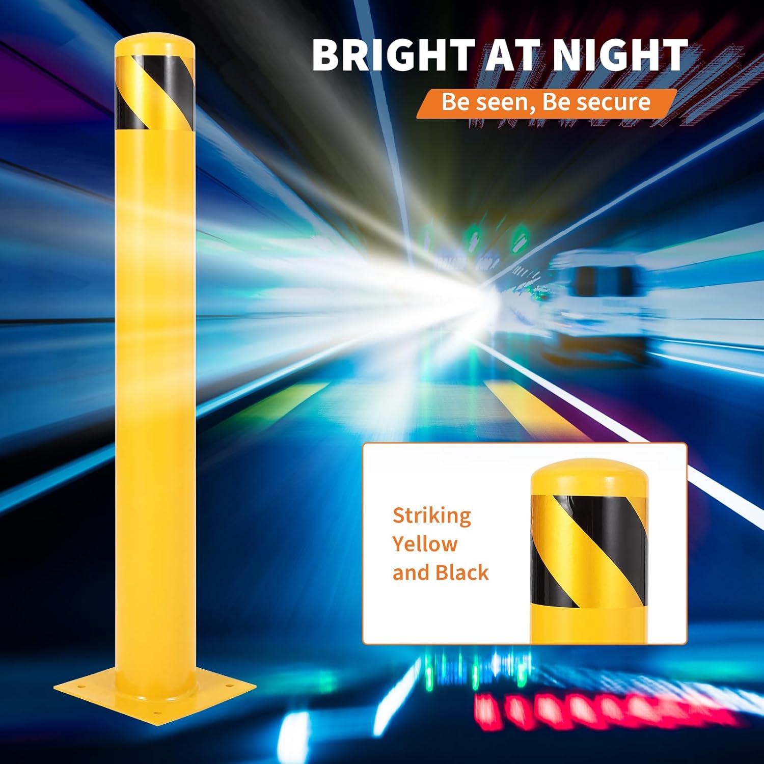 4.5x36 Inch Safety Bollard Post - Yellow Steel Bollard with Anchor Bolts (1-Pack) for Parking Lots, Walkways & Traffic Areas