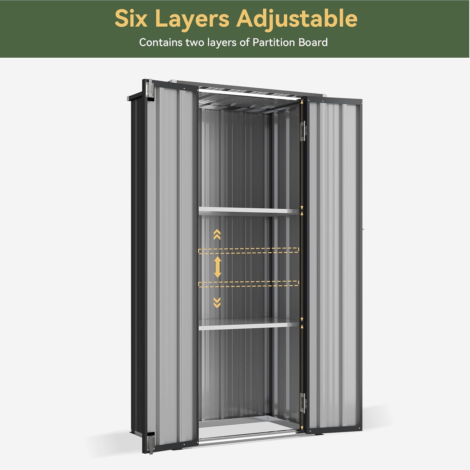 Aoxun 31x19 in Outdoor Storage Cabinet Metal Garden Shed with 2 Adjustable Shelves 3 Layer Indoor& Outdoor Waterproof Vertical Storage Shed for Patio Garden, Garage, Porch (Black, 22 Cu.Ft)