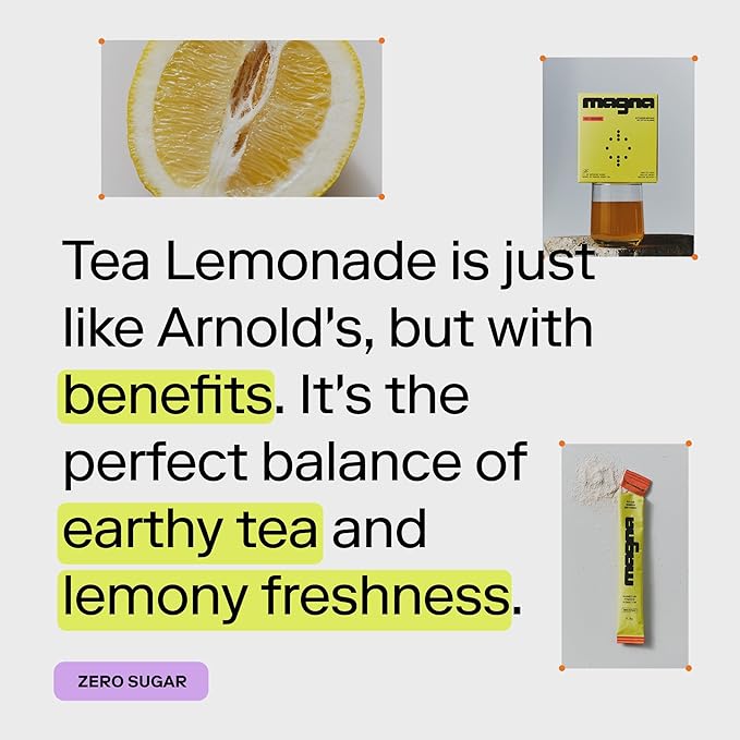 MAGNA Electrolyte Powder Drink Mix for Hydration, Energy & Focus Support with Magnesium L Threonate, Malate & Glycinate, Sodium, Potassium, Vitamin D, B6 & B12, Tea Lemonade Flavor, 14 Servings
