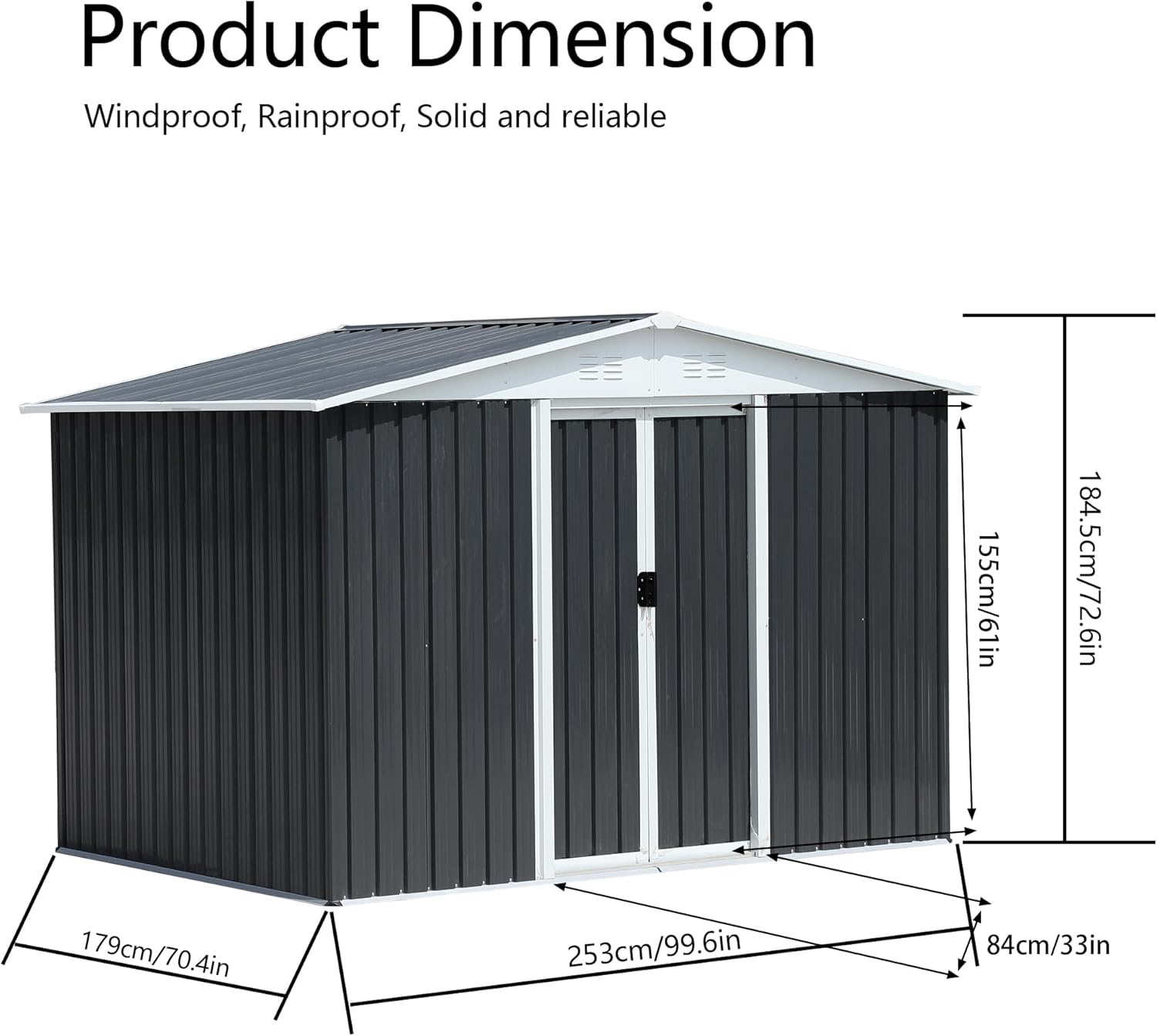 8x6 FT Outdoor Metal Storage Shed with Updated Frame, Waterproof Durable Garden Sheds w/Lockable Sliding Doors and Vents, All-Weather Shelter Tool House for Backyard, Patio, Lawn, Grey