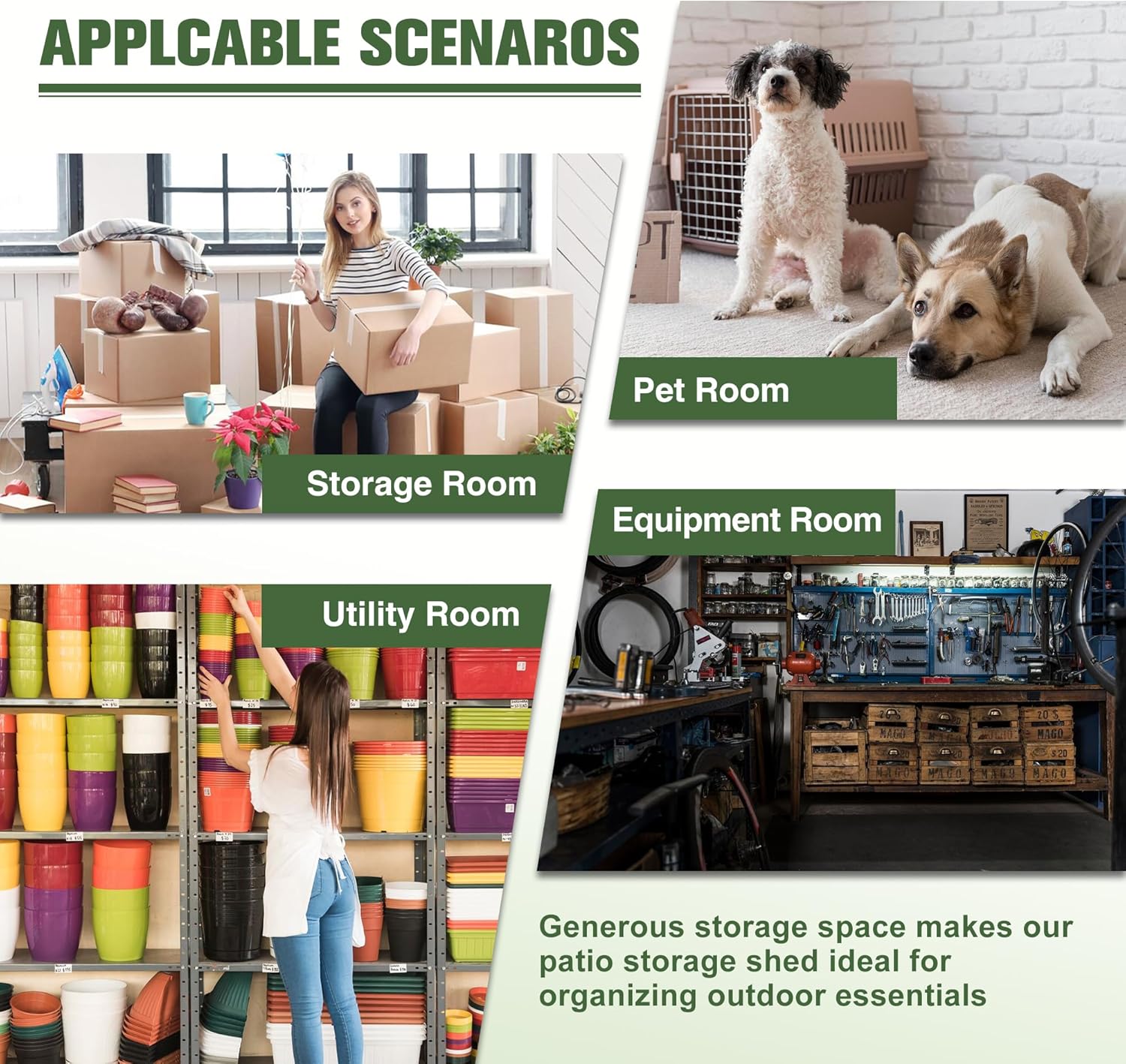 - 【Excellent Ventilation and Natural Light】The louvered vents above the door and the side window allow for efficient airflow, keeping the shed well-ventilated and reducing moisture buildup. The window design also allows natural light to enter, providing clear visibility of the interior and creating a bright and airy environment inside your garden shed. You won't have to fumble around in the dark when looking for your tools!