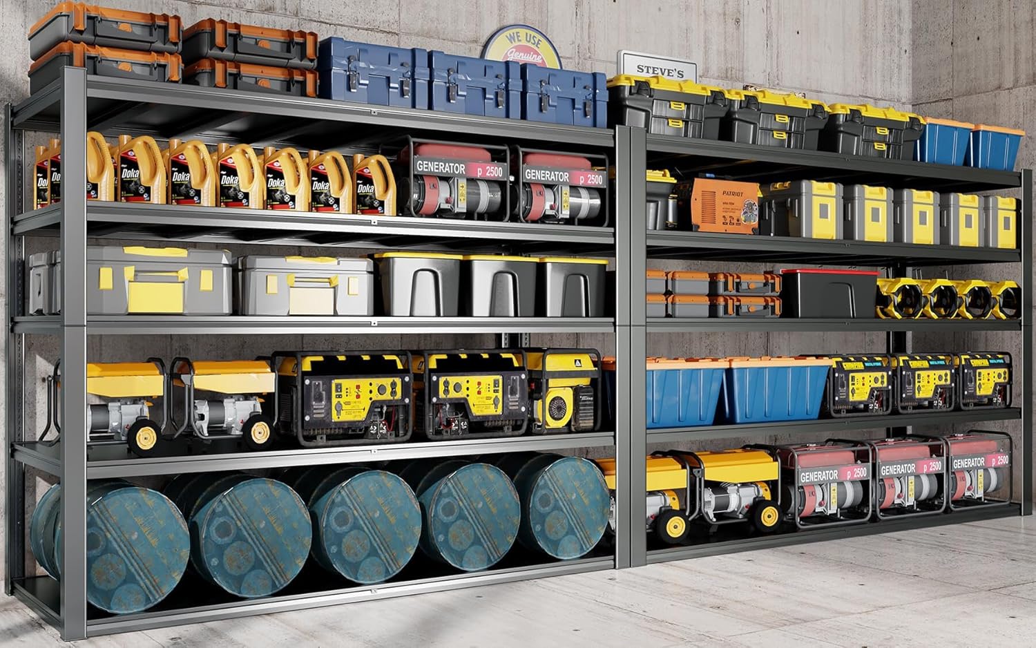 65" W Heavy Duty Garage Shelving, 84" H Garage Storage Shelves, 5 Tier Metal Shelving Unit, Adjustable Commercial Shelving, 2 Pack