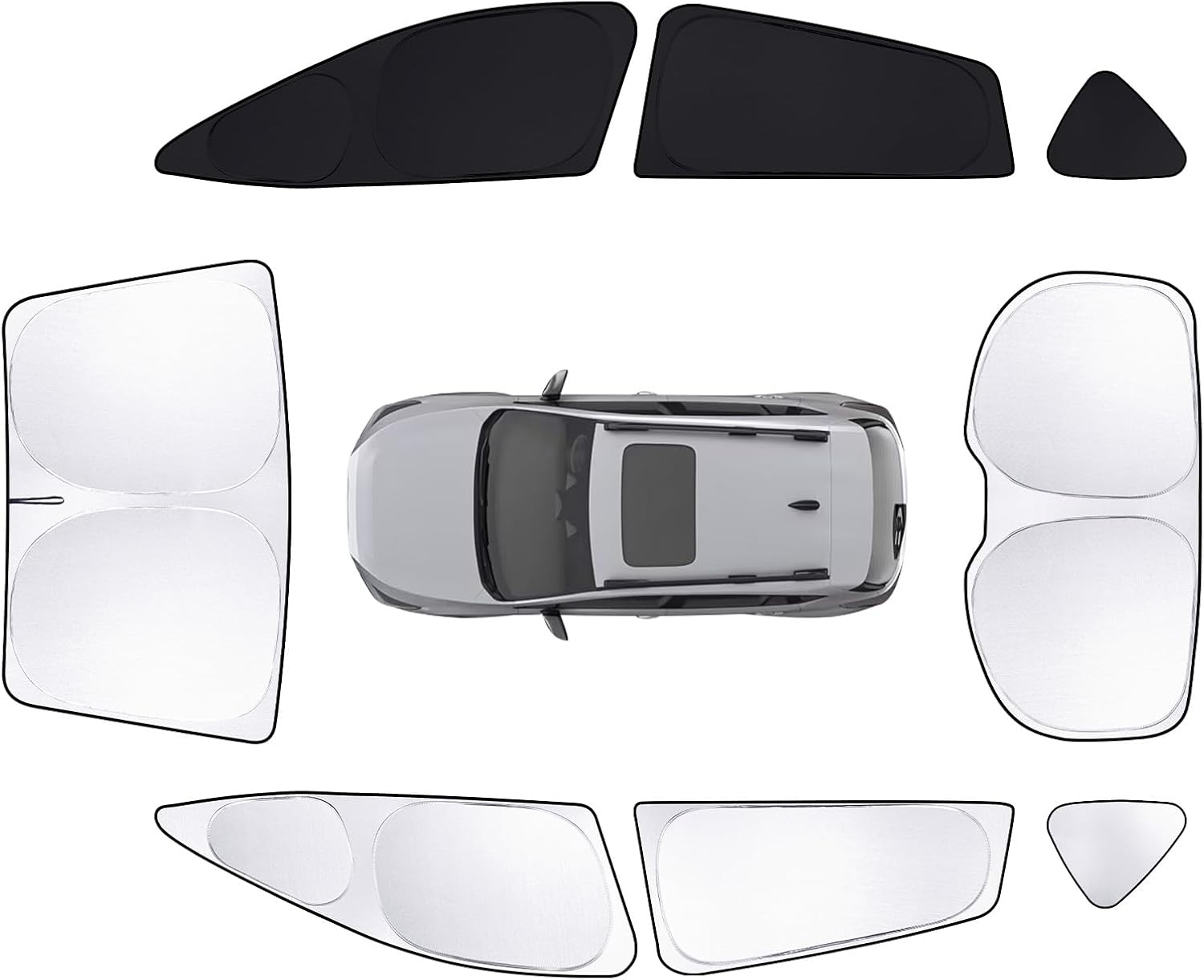 - All-new upgrade: Each sun visor is covered with a silver metal aluminum layer on the outside and black on the inside. Compared with the all-black sun visor, the silver sun visor can better lower the temperature inside the car. Meanwhile, when you need to use the black sun visor, just flip it over for use