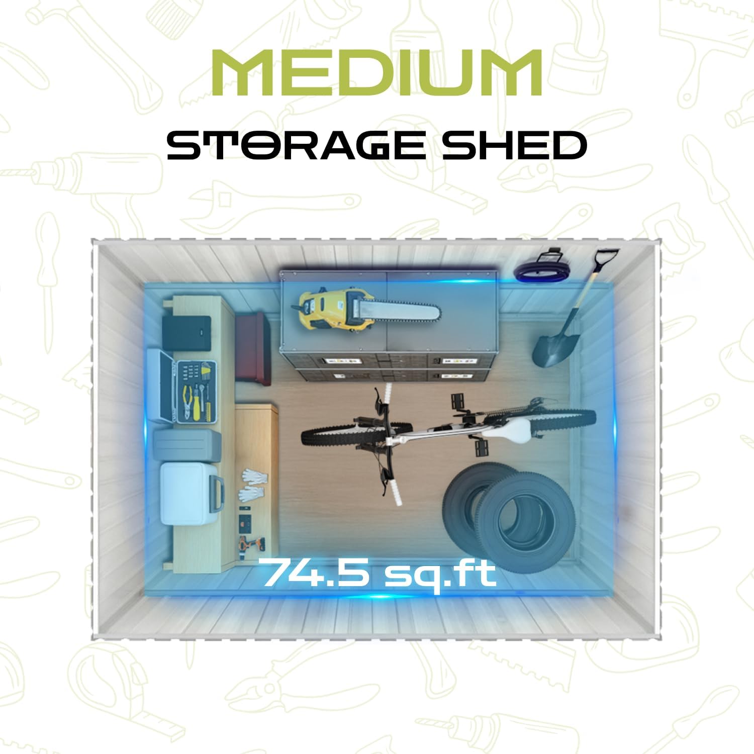 - 【Versatile & Spacious Storage】 This 118.72 sq.ft outdoor shed provides ample room for gardening tools, seasonal items, or even a small workspace, featuring 4 ventilation slots and a translucent window to reduce moisture buildup and improve airflow
