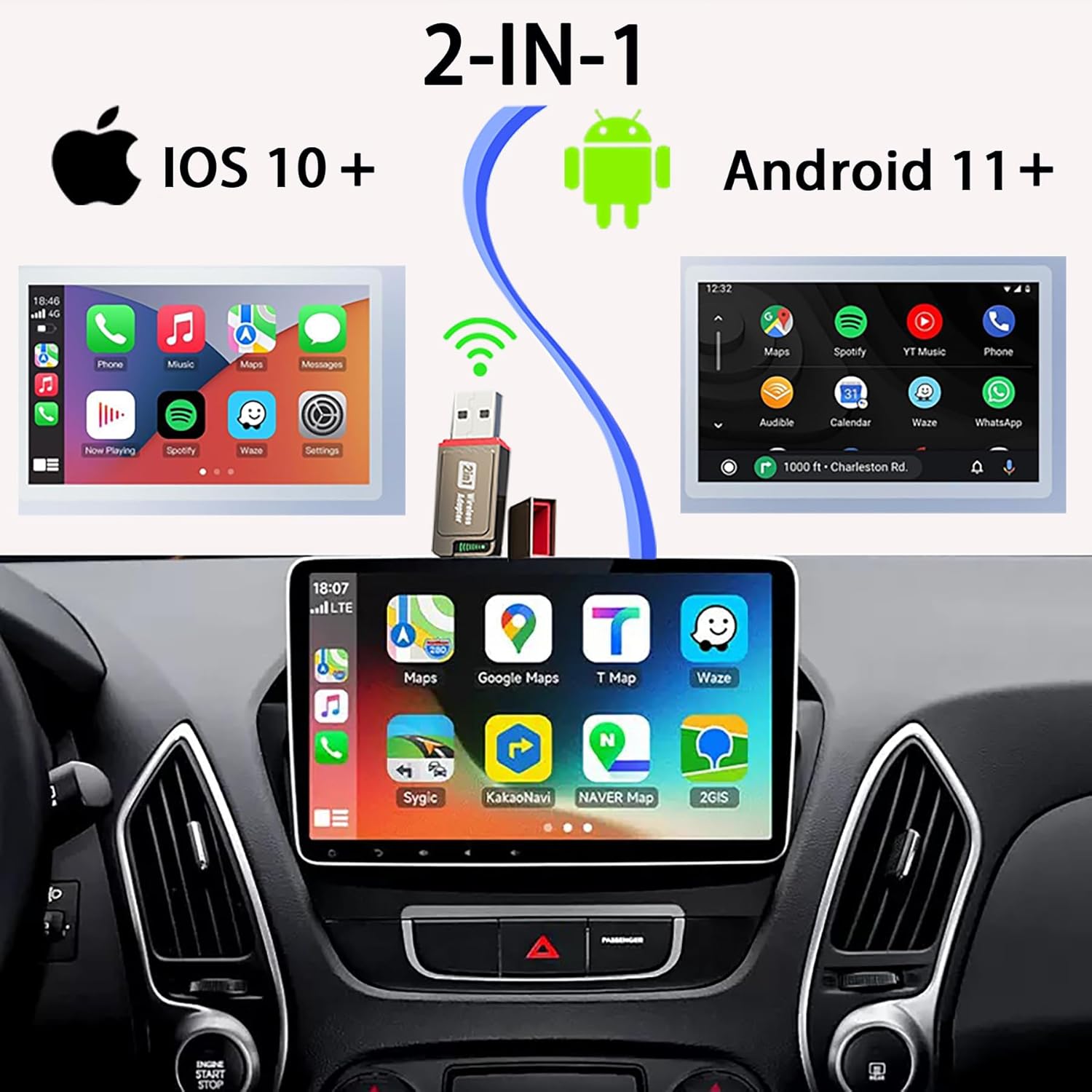 2-in-1 Wireless CarPlay Adapter for iPhone& Android, Convert Wired to Wireless Apple CarPlay Adapter, Mini Size with Extension Cable USB & USB-A/Type-C, Stable Control & No Delay