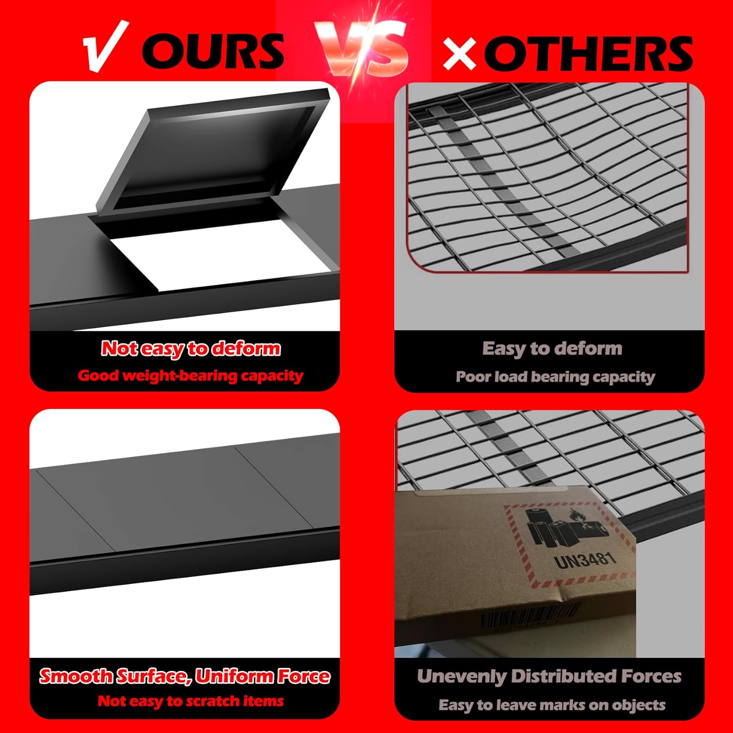 - Flat Laminate - Compared to most of the iron mesh on the market, we use iron plate for support, which has better load-bearing capacity, is not easy to deform, and is less likely to cause damage to the support object and leave marks