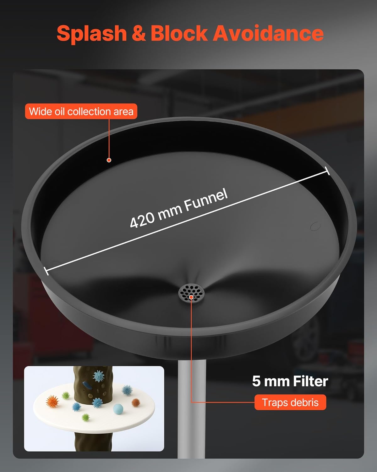 - Leak-proof Design: Our oil drain container includes a 16.5-inch wide spill-proof funnel, improving oil recovery. Comes with extra sealing tape and clamps for additional leak protection, avoiding overflow and spills