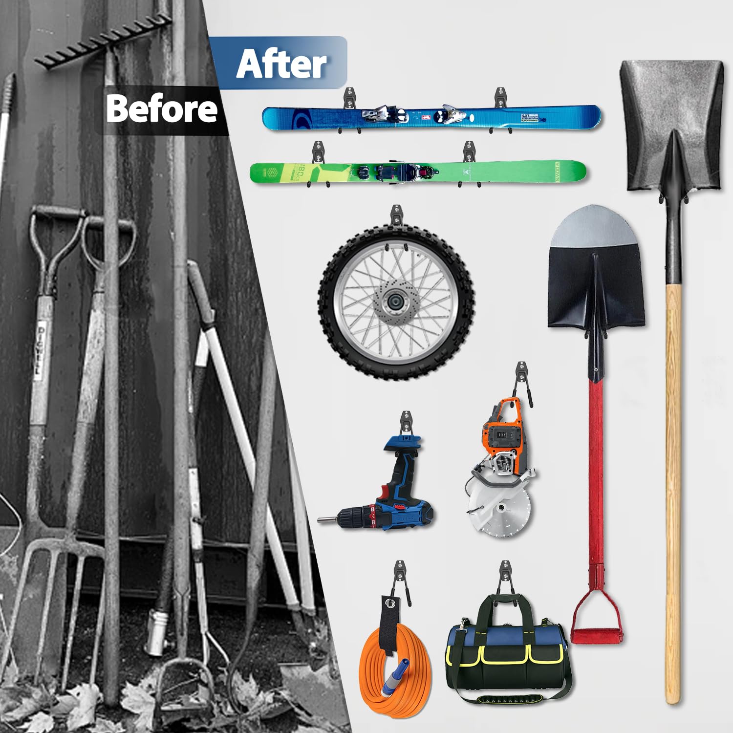 - Multi-Use Utility Hooks: The storage hooks for hanging in garage are ideal for garage, garden, shop, basement, warehouse, shed, or man cave, etc Outdoor occasions. Our garage hooks for hanging can provide a great solution to use garage storage space more efficiently, the garage organization can hang various items like garden tools, ladders, bikes, strollers, chairs and so much more