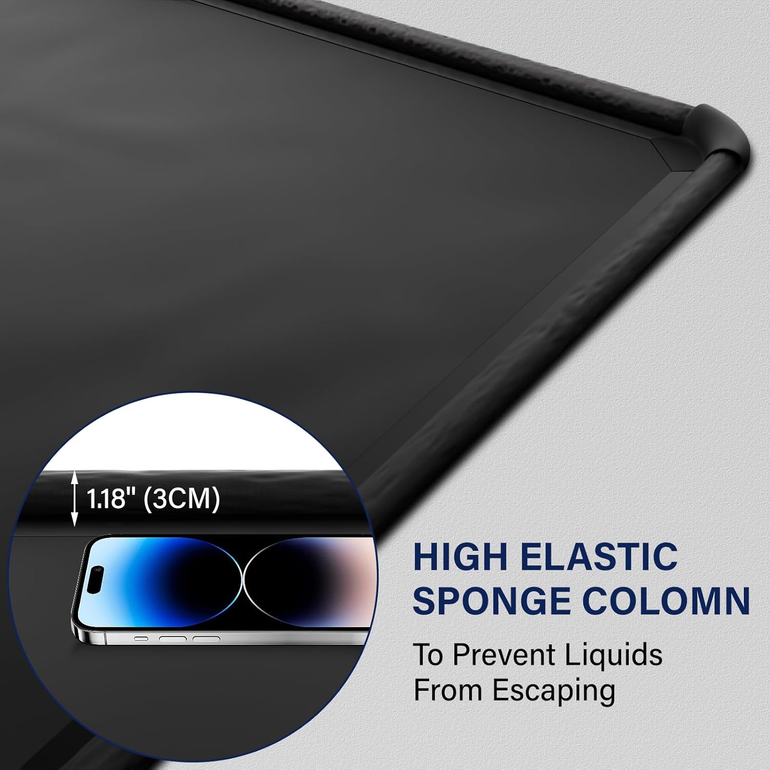 - Our unique raised edge design acts as a sturdy barrier, effectively trapping melted snow, water, mud, and other liquids inside the mat. This fully contained system prevents dirty liquids from running onto your garage floor, keeping it dry and spotless. Say goodbye to messy puddles and stains.
