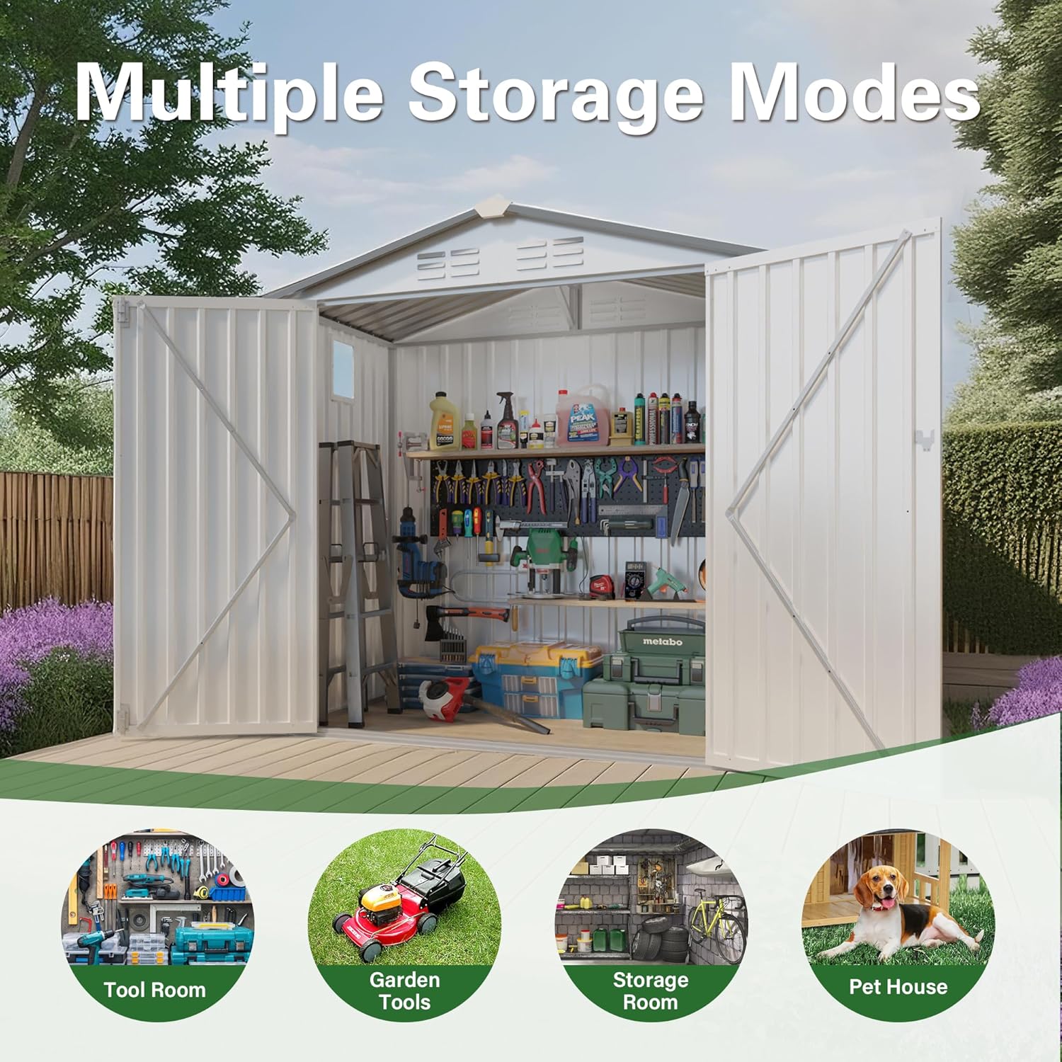 6 x 4 FT Outdoor Storage Metal Shed, Bike Garden Tool Shed with Slooping Roof, Lockable Doors and Aluminum Frames, Shed Easy to Assemble for Garden, Patio, Lawn, White