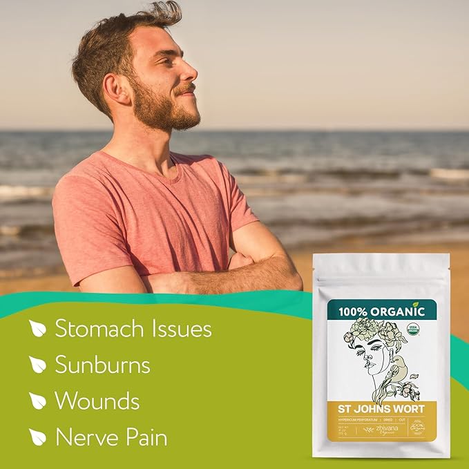 - 🌿USDA Organic Saint John’s Wort Tea (Hypericum Perforatum): One of the most used herbal teas in the world, our St. John’s Wort plant is hand-picked in ecologically clean areas of Ukraine and dried with the proper drying method.
