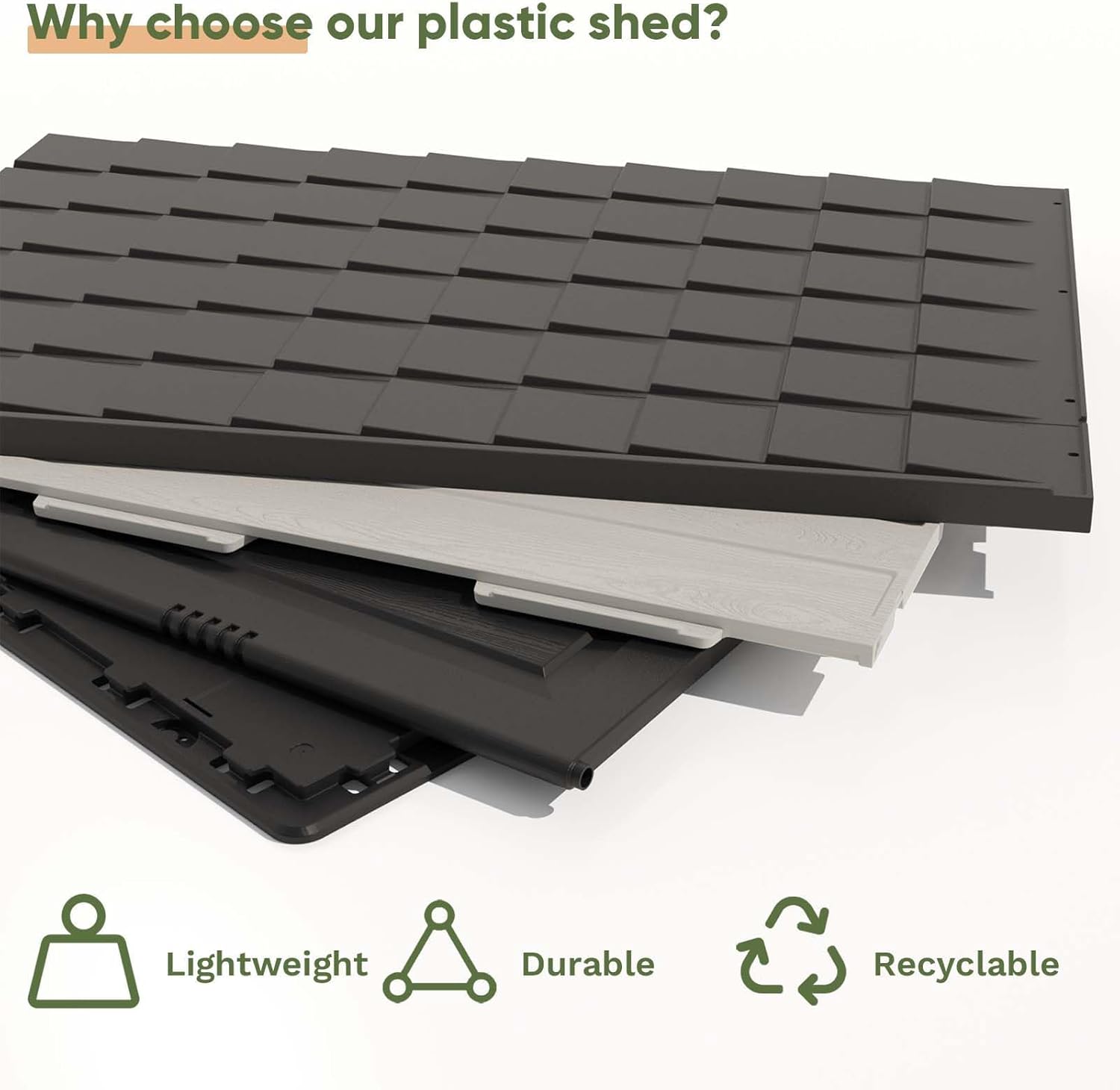 - Recyclable and Durable Construction: Crafted from recyclable materials, this storage shed combines lightweight convenience with enduring durability. Its beige walls and gray roof add a touch of elegance and modern style.