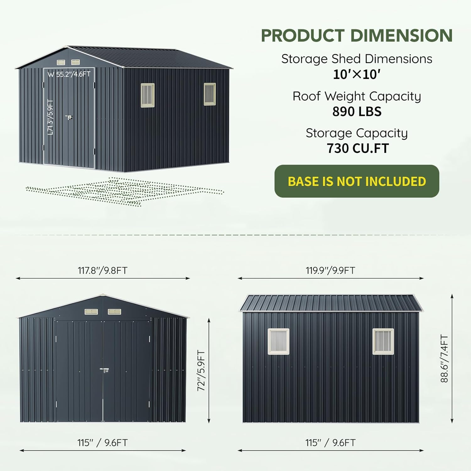 - Spacious 10x10FT Storage Capacity β Provides ample space for storing bikes, lawn tools, garden supplies, and seasonal equipment. Perfect for backyard, patio, or garden use.