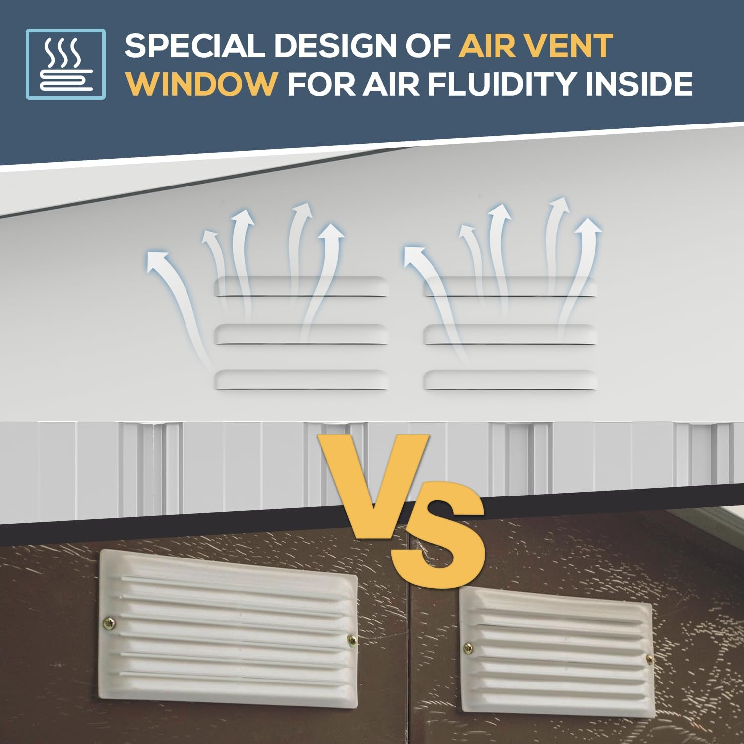 - Robust and Resilient: Enhanced metal plates contribute to the shed's weight of 250 lbs, surpassing cheaper alternatives and significantly reinforcing stability. Withstanding severe weather conditions, it exhibits exceptional wind resistance, reaching approximately 70 mph.