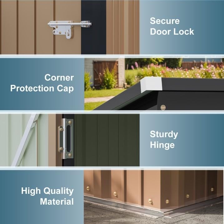 - Flexible Storage Space – Verify Size Before Purchase: Ample room to organize garden tools, bikes, and more! Maximize your storage potential—please check the detailed size guide to ensure perfect fit for your needs.