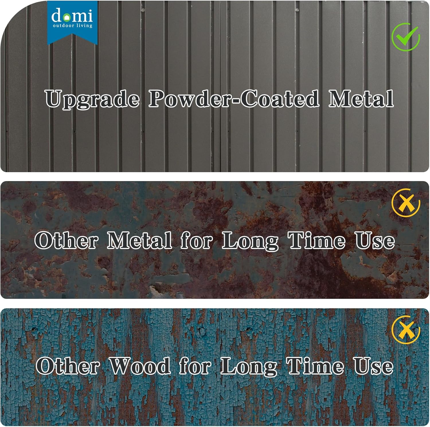 - Extra Large Storage Shed - Available in 15FT, 20FT, and 25FT options, domi storage shed offers a secure and weatherproof space to store cars, trucks, lawn equipment, bicycles, outdoor furniture, and more. It helps declutter your yard, garage, or basement while keeping everything organized and protected.
