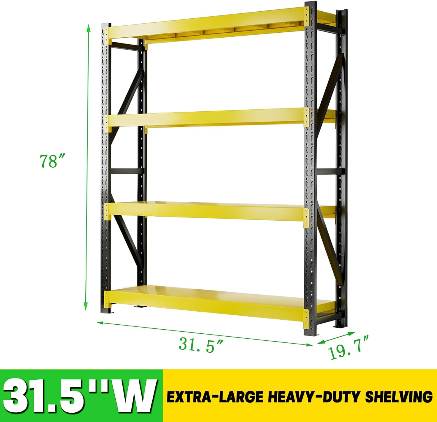 3000LBS Heavy Duty Storage Shelves,78''H Metal Garage Shelving, 4-Tier Adjustable Garage Organization Shelving Units, Industrial Shelving for Warehouse,Workshop- Black & Yellow